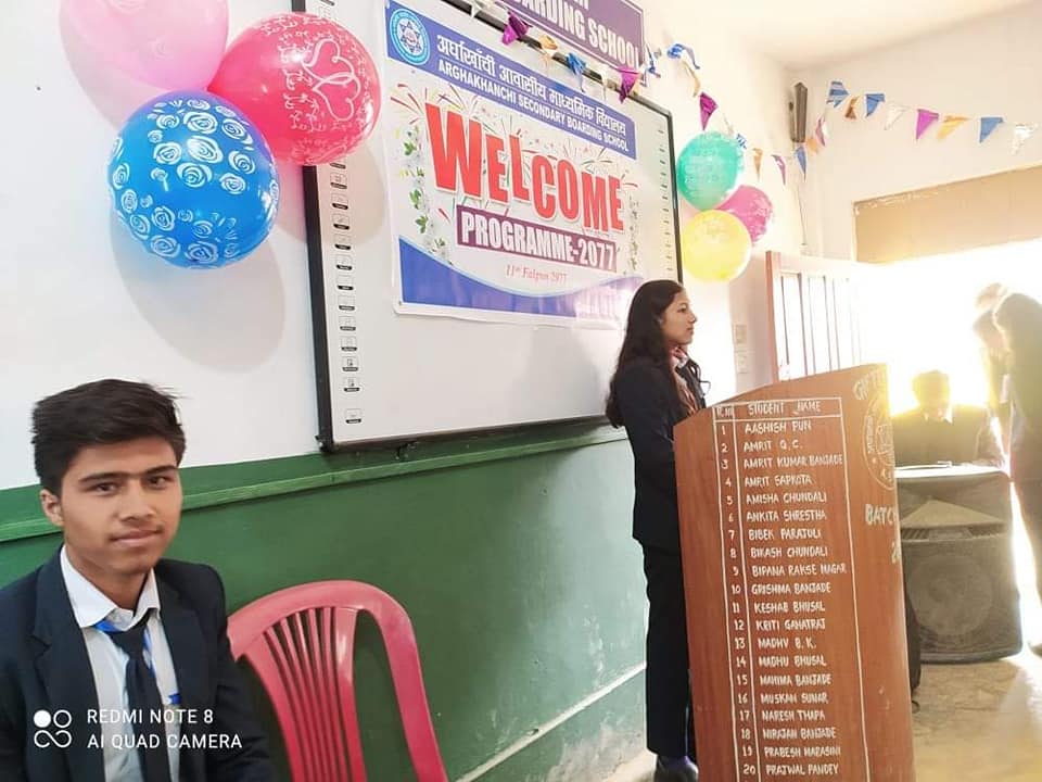 चुत्राबेसी, अर्घाखाँची (अर्घाखाँचीडट्कम) । अर्घाखाँची जिल्लाको सन्धिखर्क नगरपालिकाकाे वार्ड नम्बर २ चुत्राबेसीको वेलवाटीकामा रहेको अर्घाखाँची आवासीय माध्यमिक विद्यालय सन्धिखर्कमा कक्षा १२ का विद्यार्थीहरूद्वारा कक्षा ११ का विद्यार्थीहरूको स्वागतार्थ आयोजना गरिएको कार्यक्रम सम्पन्न भएको छ ।