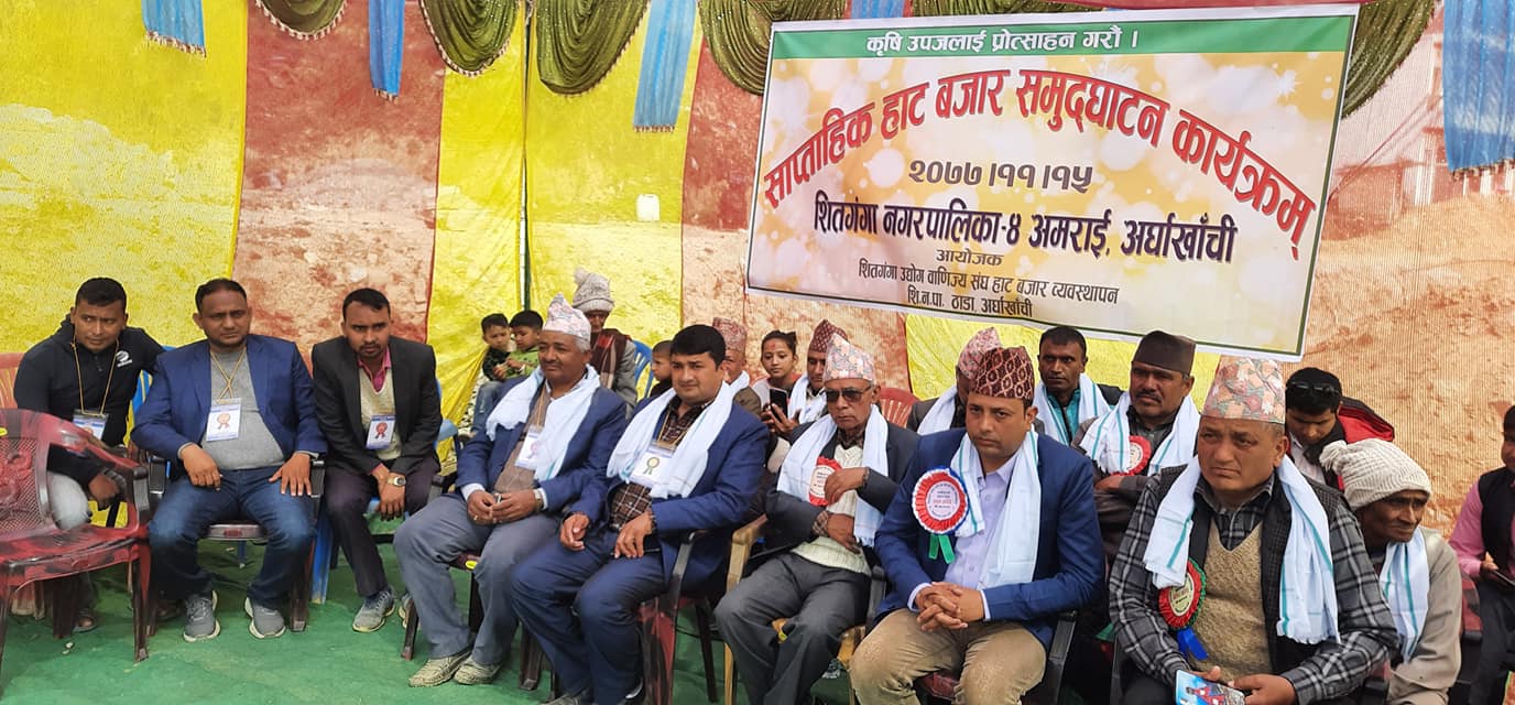 अमराई, अर्घाखाँची (अर्घाखाँचीडट्कम) । अर्घाखाँची जिल्लाको शितगंगा नगरपालिकाकाे अमराईमा हरेक शनिबार लाग्ने साप्ताहिक हाट बजारकाे उद्धघाटन गरिएकाे छ ।