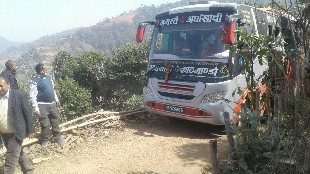 धनचौर, अर्घाखाँची (अर्घाखाँचीडट्कम) । अर्घाखाँची जिल्लाको भुमिकास्थान नगरपालिका वार्ड नम्बर १० धनचौरको तल्ला पाकुमा पहिलो पटक बस पुगेपछि स्थानियबासीमा खुशीयाली छाएको छ ।