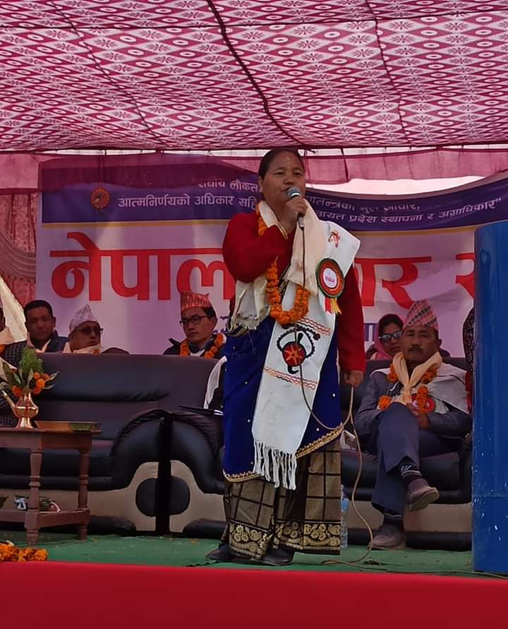 उनले हरेक आन्दोलन पछिका परिवर्तनमा मगर समुदायको प्रतिनिधित्व हुन नसकेको भन्दै बर्तमान संबिधानले समाबेसी समानुपातिक अधिकारको ब्यवस्था गरेको भएता पनि प्रतिनिधित्व नगराइएको उल्लेख गरिन् । उनलेआफ्नो पार्टीले युद्धकालमै लुम्बिनी प्रदेशलाई मगरात प्रदेशको पहिचान गराएको भएपनि अन्य पार्टीका नेताहरुले जातिय राज्य नबनाउन बाध्य पारेको गुनासो गरिन् । उनले आफ्नो समुदायको पहिचान र अधिकारको निम्ति संबिधानमा थप संसोधन जरुरी रहेको समेत बताईन् । फरक प्रसङ्गमा अहिले भएको संसद पुनःस्थापनले ०७२ को संविधानको रक्षाा र नेपाली जनताको अदालत प्रती विश्वास र जित भएको बताईन् ।