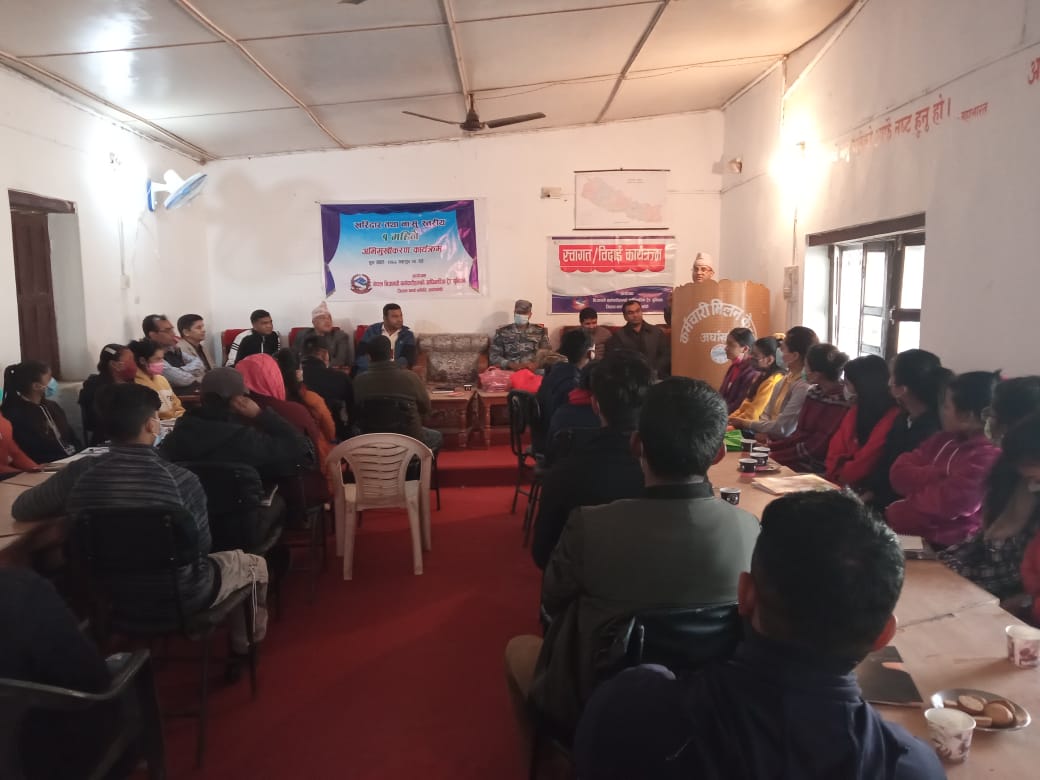 कार्यक्रम बिबेक पन्तको सन्चालन झबिन्द खनालको अध्यक्षता तारा पोख्रेलको स्वागत मन्तब्य प्रजिअ बिस्णु पौडेलको प्रमुख अतिथ्यतामा सम्पन्न भएको हो।