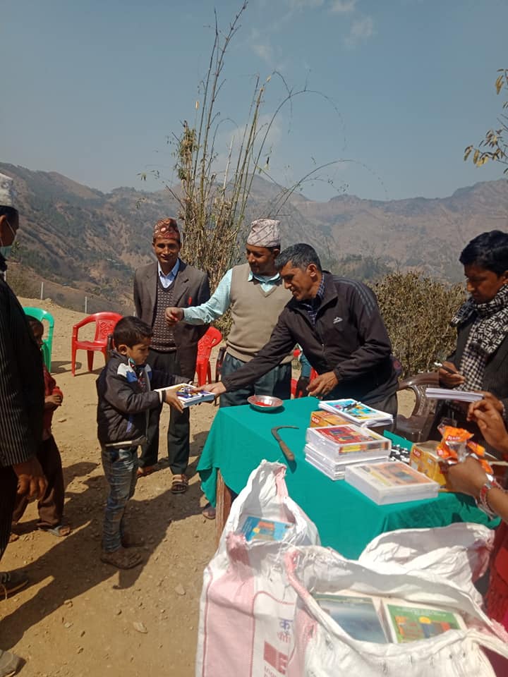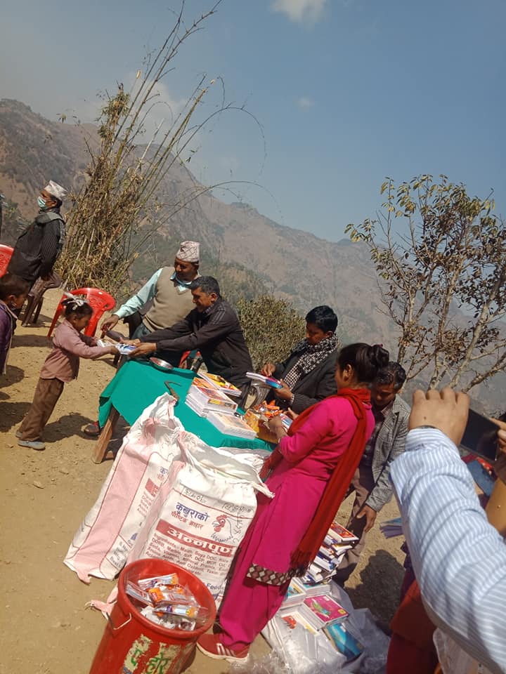 कार्यक्रममा वडाअध्यक्ष शोभाकर भुसालले विधार्थीहरुलाई शैक्षिक सामाग्री तथा सेनेटरी प्याड वितरण गर्नुभएको थियो ।