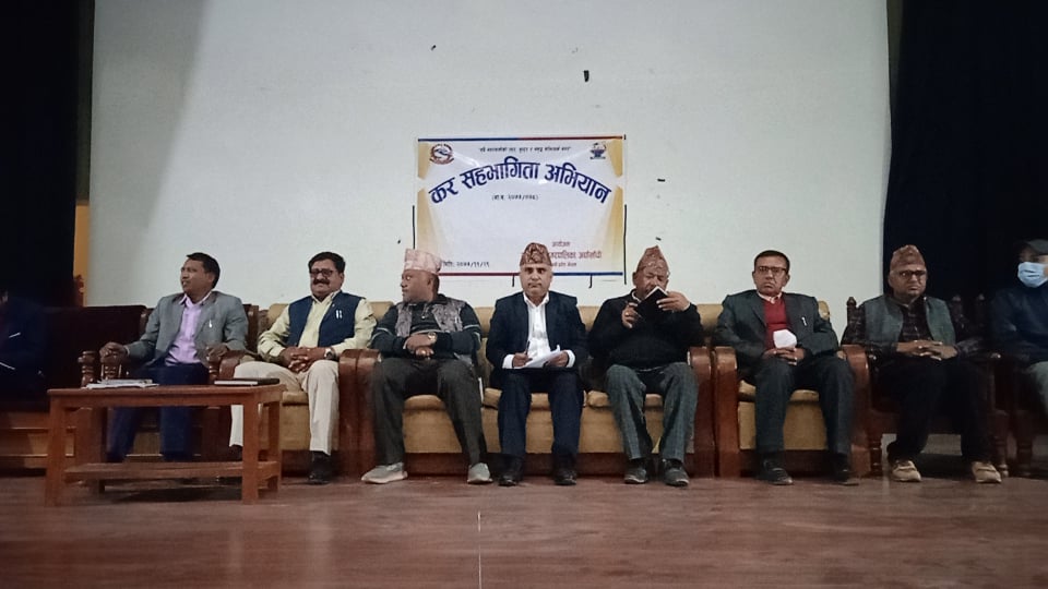 कार्यक्रम राजस्व प्रमुख मुत्ति खनालकाे सञ्चालन र नगर प्रवत्ता लिलाराम गाैतमकाे स्वागत मन्तव्यमा कार्यक्रम सम्पन्न भएकाे थियो ।