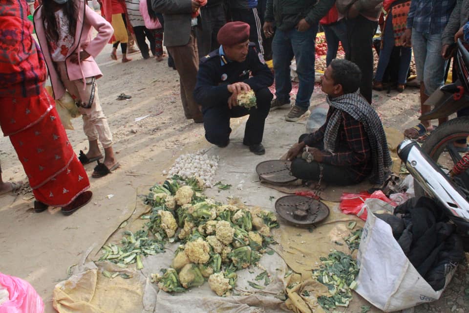 तेस्राे सातामा सञ्चालन भएकाे हाट बजार इलाका प्रहरी कार्यालय ठाडाका प्रहरी निरिक्षक बाबुराम बस्नेत, वडा नम्बर ९ का वडा अध्षक्ष भिम केसि, उद्याेग बाणिज्य संघका अध्यक्ष चिन्ताराज अधिकारी ,तिलक अधिकारी, नारायण बन्जाडे, डिल बहादुर गुरुङ लगायतले अनुगमन गर्दै गुणस्तरमा ख्याल गरि बिक्री गर्न ब्यापारीहरुलाइ निर्देशन गर्नु भएकाे छ ।