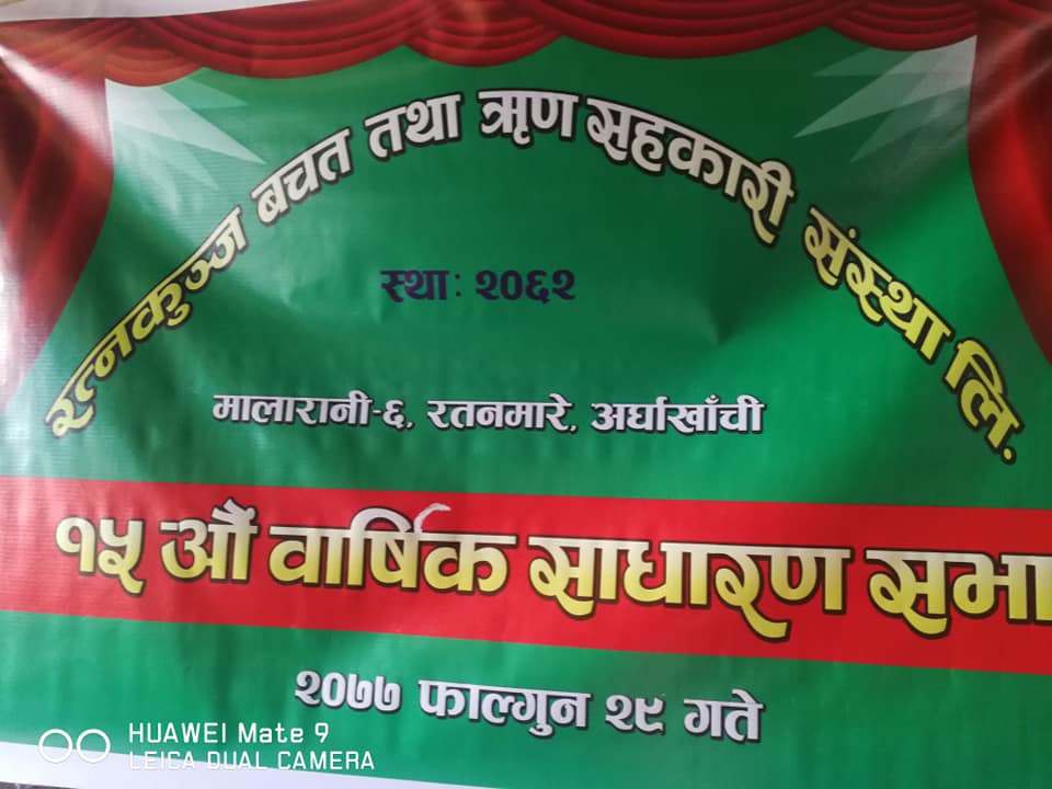 हंसपुर, अर्घाखाँची (अर्घाखाँचीडट्कम) । अर्घाखाँची जिल्लाको मालारानी गाउँपालिका वार्ड नम्बर ६ हंसपुरको रतनमारेमा श्री रत्नकुञ्ज बचत तथा ऋण सहकारी संस्था लिमिटेडको १५ औ वार्षिक साधारणसभा सम्पन्न भएको छ ।