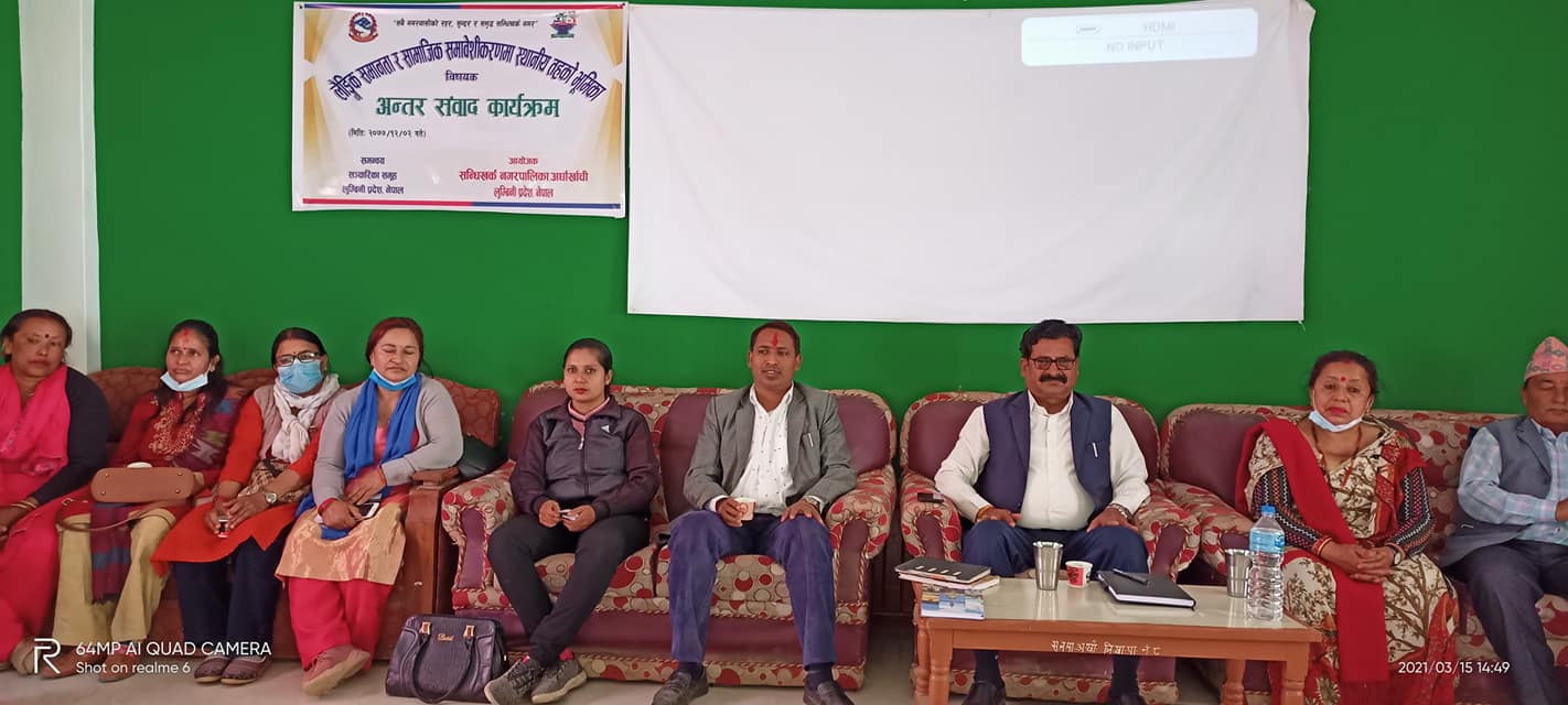 सन्धिखर्क, अर्घाखाँची (अर्घाखाँचीडट्कम) । अर्घाखाँची जिल्लाको सन्धिखर्कमा लैङ्गिक समानता र सामाजिक समावेशीकरणमा स्थानीय तहको भूमिका विषयक अन्तर संवाद कार्यक्रम सम्पन्न भएको  छ ।