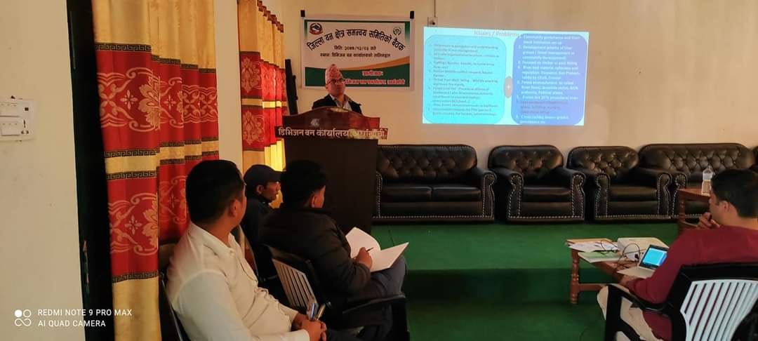 बैठक ले दाेश्राे चाैमासिक अवधिकाे समीक्षा गरेकाे छ । बैठकमा वन क्षेत्रका समस्या तिनकाे समाधान ,अवसर र चुनाैति का साथै आगामि कार्य याेजनाका बिषयमा जिल्ला डिभिजनल अधिकृत माेहन प्रसाद श्रेष्ठले प्रकाश पार्नु भएको थियाे ।प्रमुख अतिथि प्रमुख जिल्ला अधिकारी बिष्णु पाैडेलले वन कार्यालयले गरेकाे राम्राे कामकाे प्रशंसा गर्दै बनस्पति बाट समृद्धि हासिल गर्न सबै लाग्नु पर्ने बताउनु भयाे ।