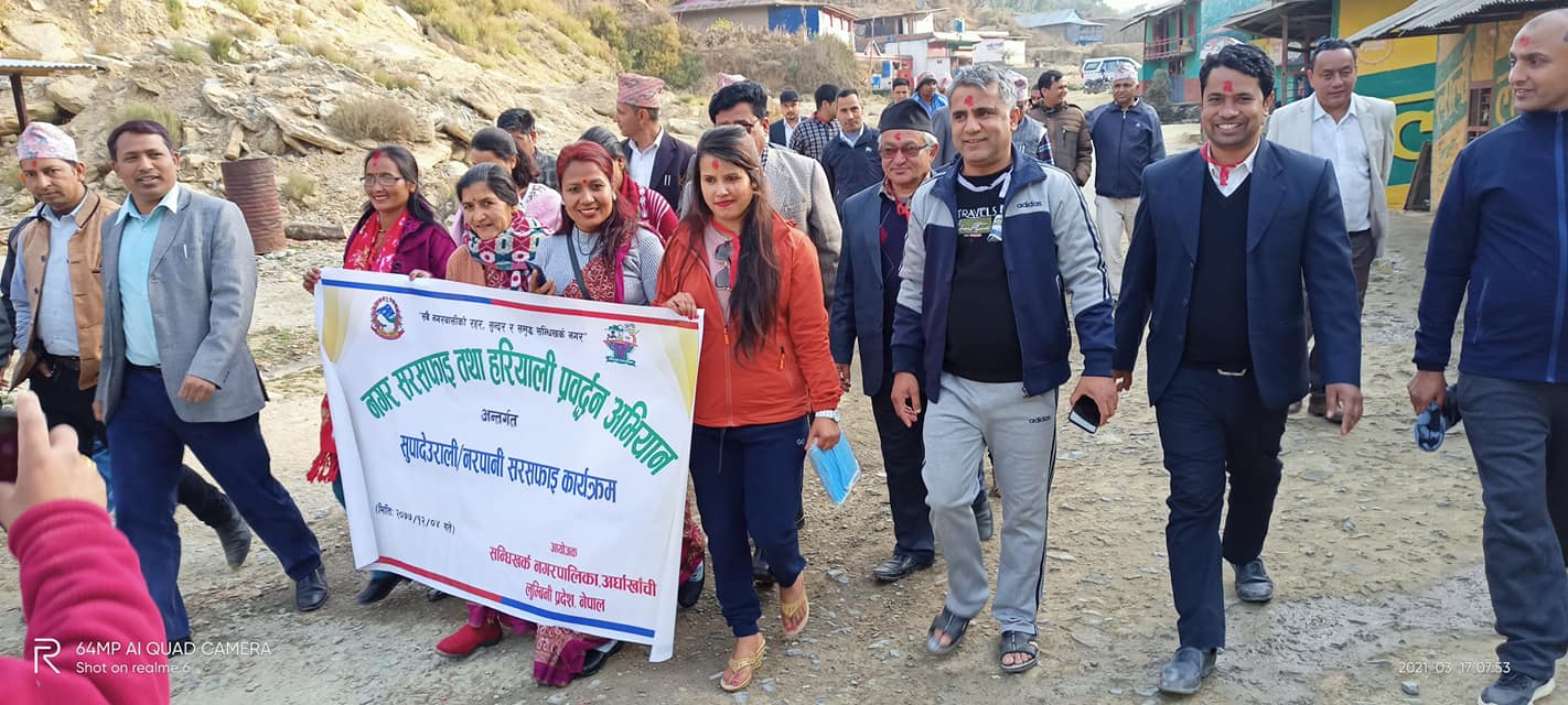 नरपानी, अर्घाखाँची (अर्घाखाँचीडट्कम) । अर्घाखाँची जिल्लाको सन्धिखर्क नगरकार्यपालिकाको अध्याबधिक योजना तर्जुमा सम्बन्धी कार्यशाला गोष्ठीको दोस्रो दिन नरपानीमा सरसफाई कार्यक्रम सम्पन्न गरिएको छ ।