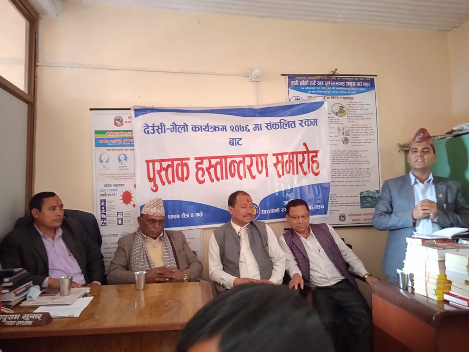 धारापानी जन्मस्थान भई विभिन्न पेशा ब्यबसायका क्रममा रुपन्देहीमा रहेकाहरुको सम्पर्क संस्था धारापनी रुपन्देही सम्पर्क मन्चले पठन संस्कृतिको बिकास गर्ने उदेश्यले पुस्तक हस्तान्तरण गरिएको हो ।