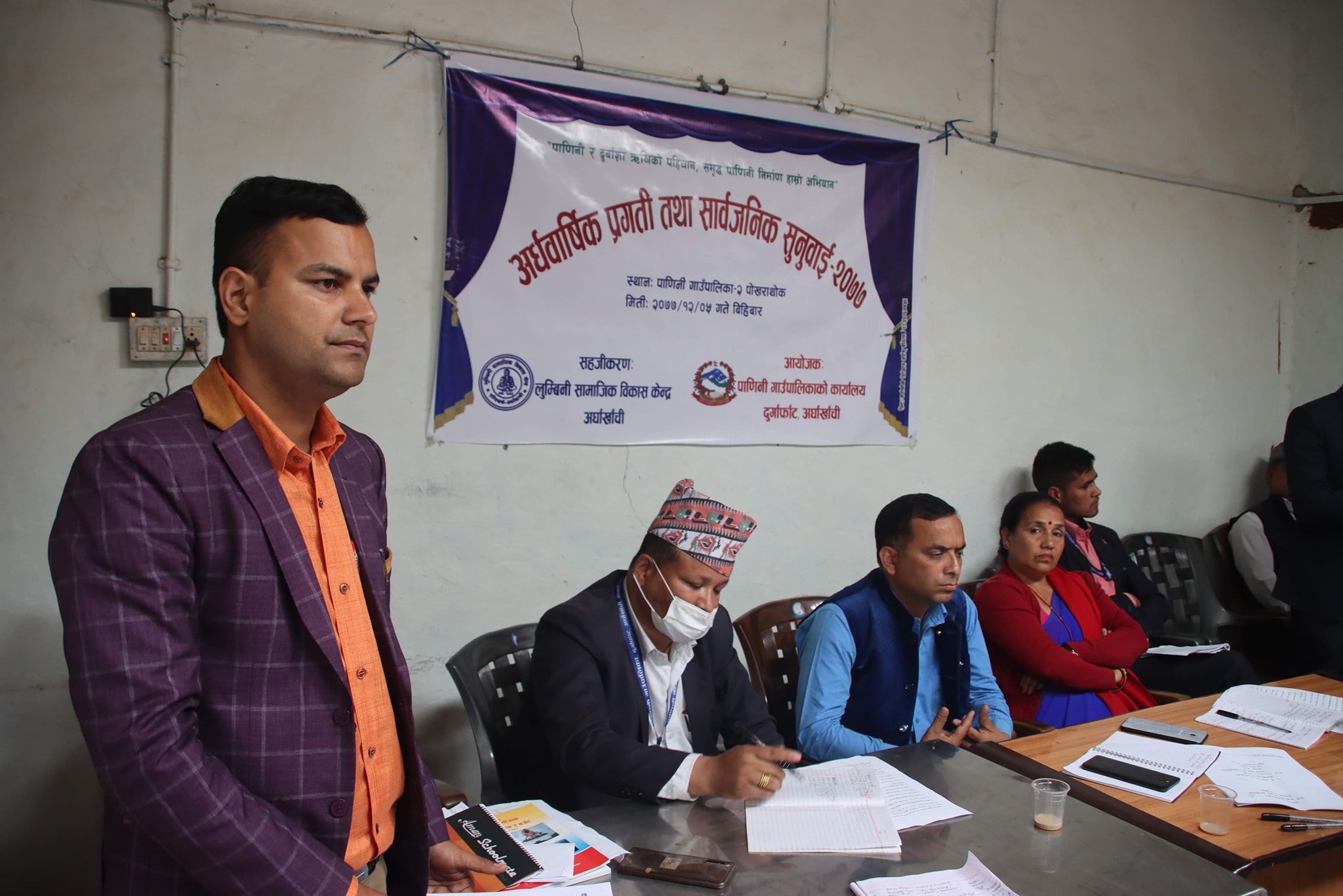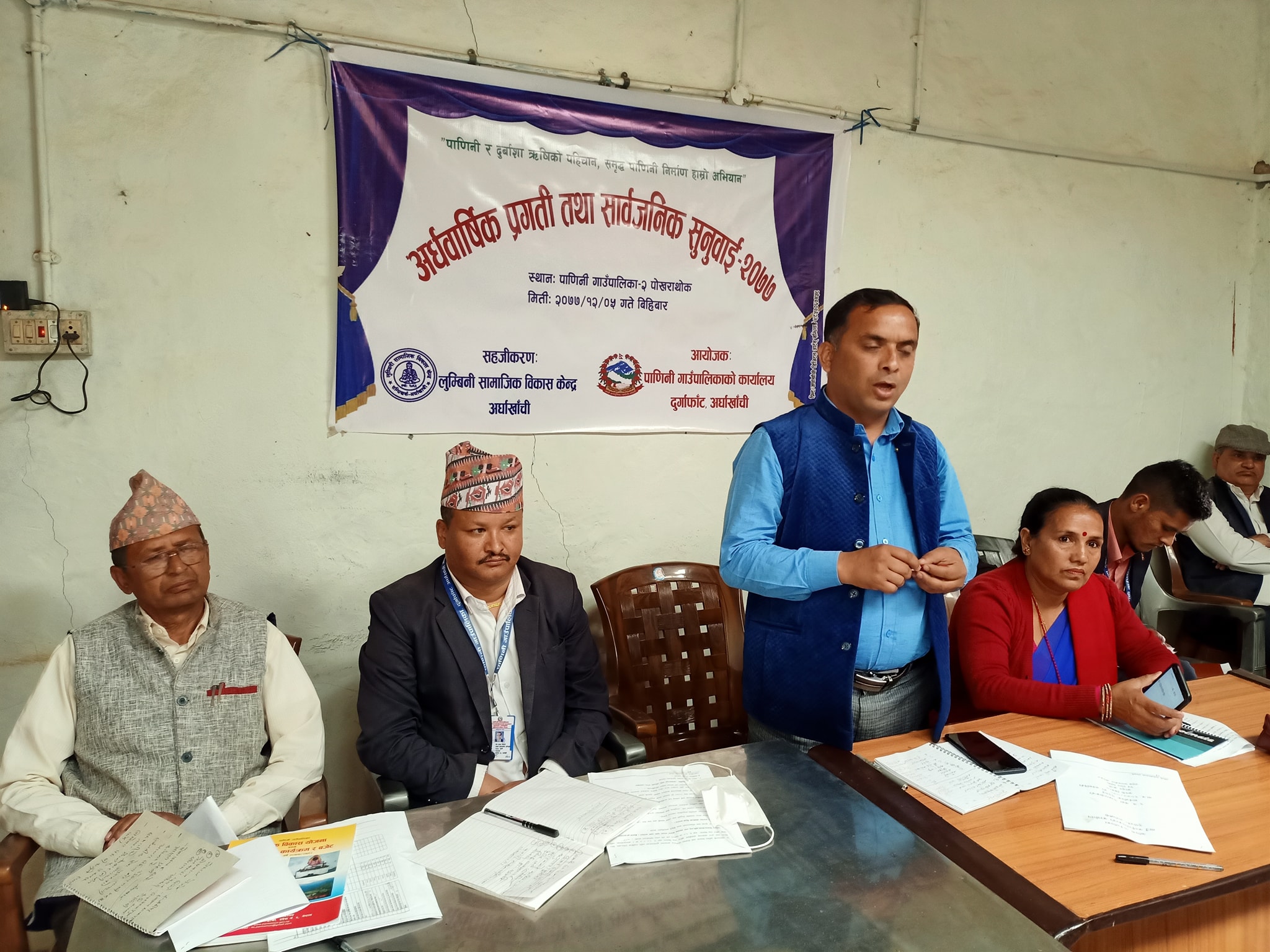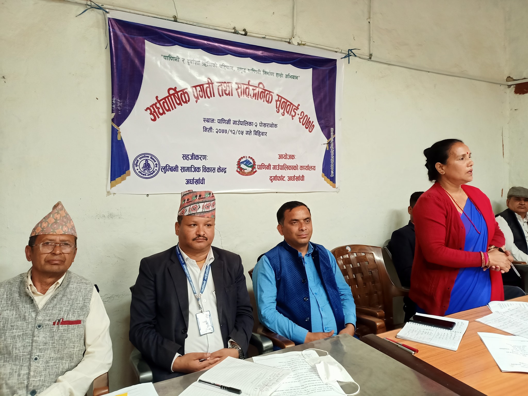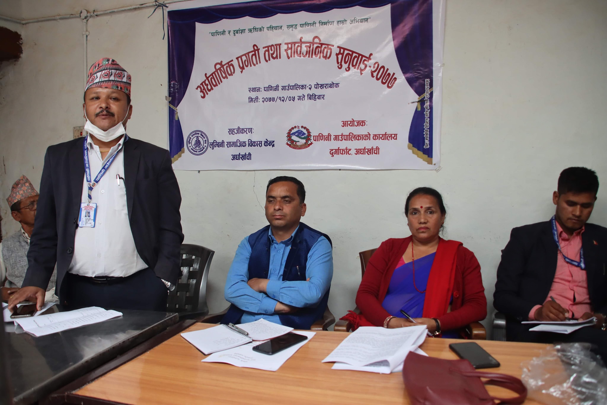 पोखराथोक, अर्घाखाँची (अर्घाखाँचीडट्कम) । अर्घाखाँची जिल्लाको पाणिनी गाँउपालिका वार्ड नम्बर २ पोखराथोकमा अर्धवार्षिक प्रगती तथा सार्वजनिक सुनवाई सम्पन्न भएको छ ।