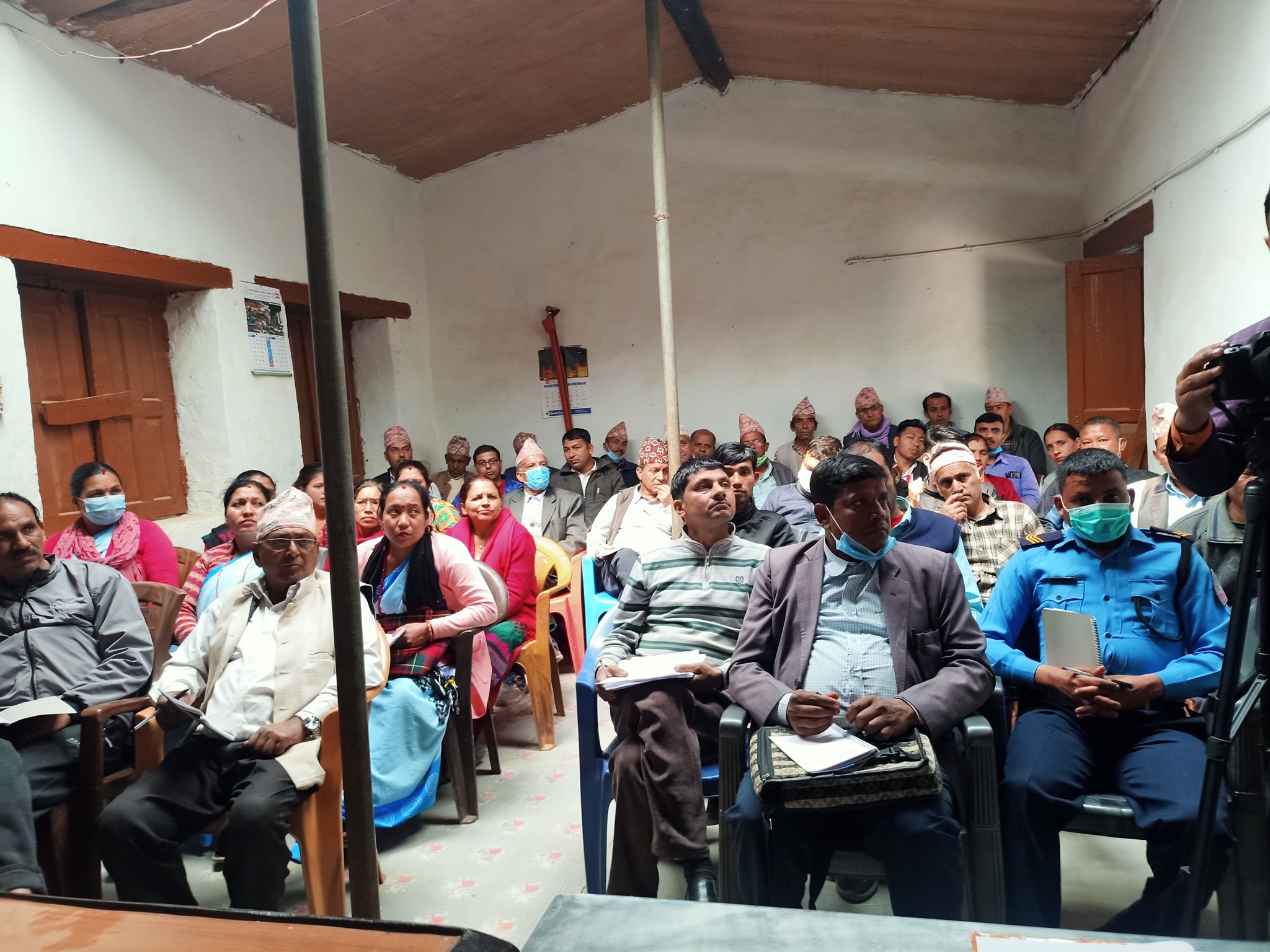 कार्यक्रममा अध्यक्ष अच्युत गौतम, उपाध्यक्ष लक्ष्मी गौतम, वडाअध्यक्ष नेत्र प्रसाद भट्टराई, प्रमुख प्रशासकीय अधिकृत नेत्र प्रसाद घिमिरे लगायतको उपस्थिती रहेको थियो ।