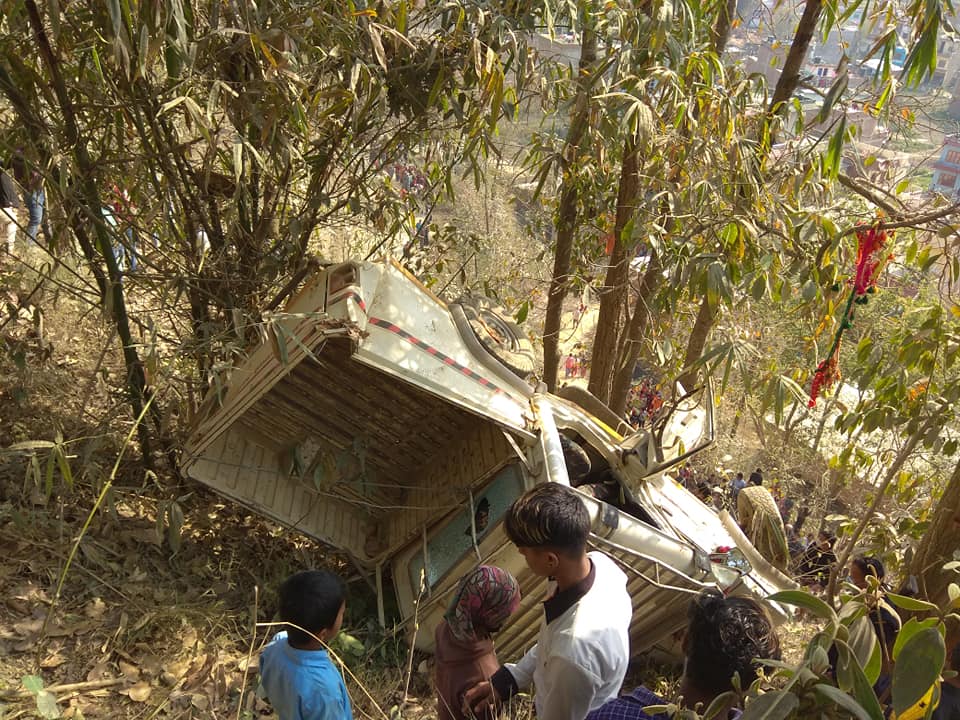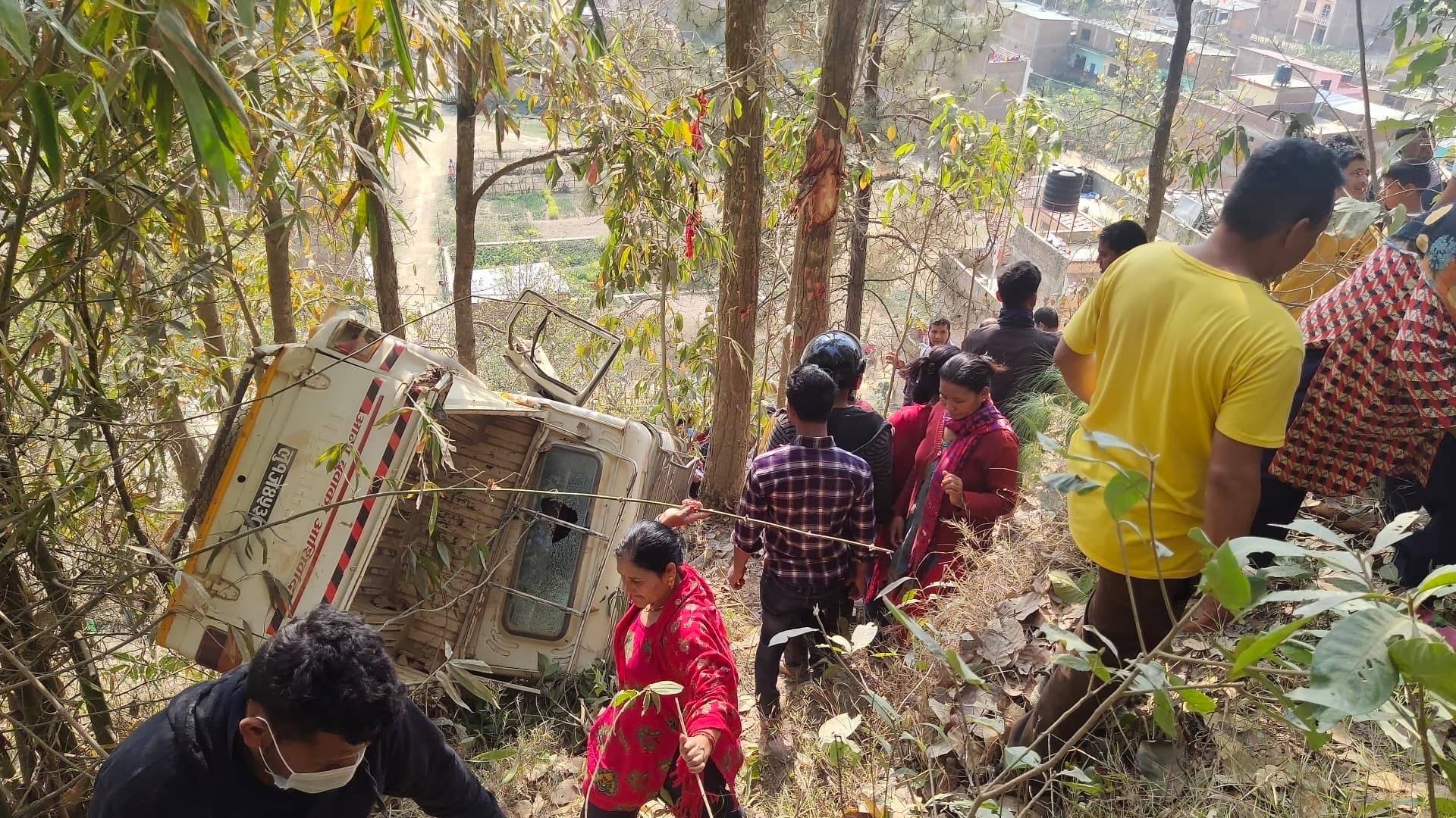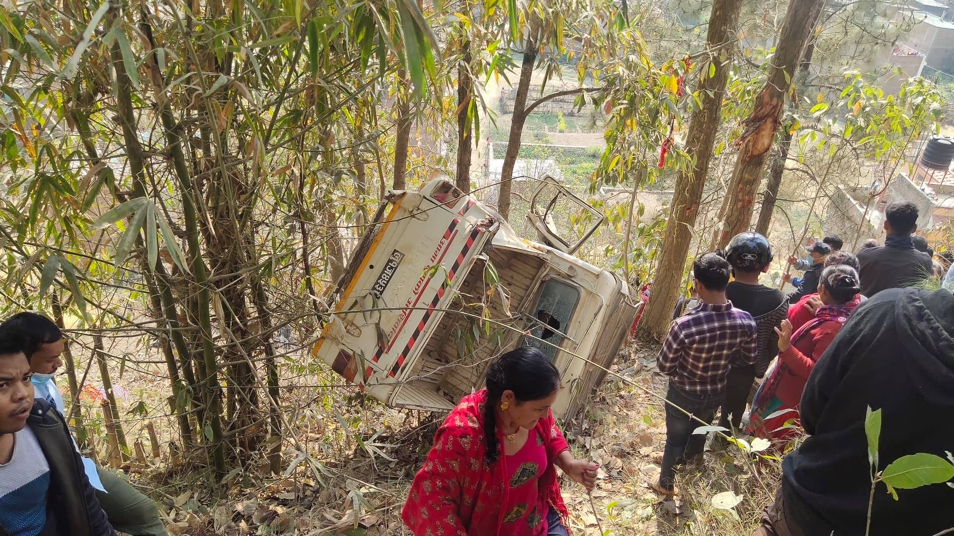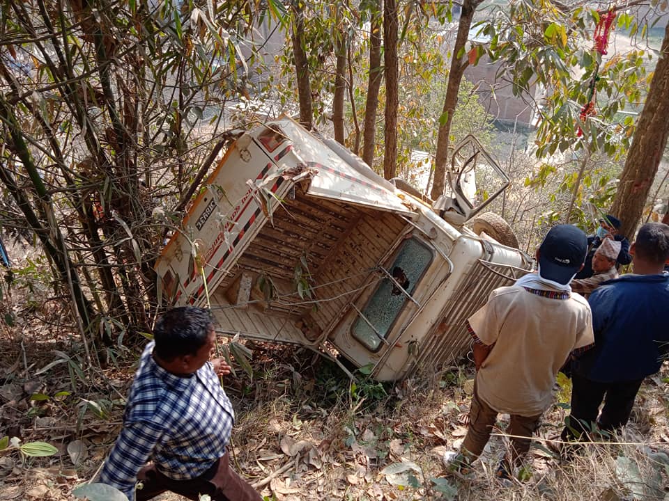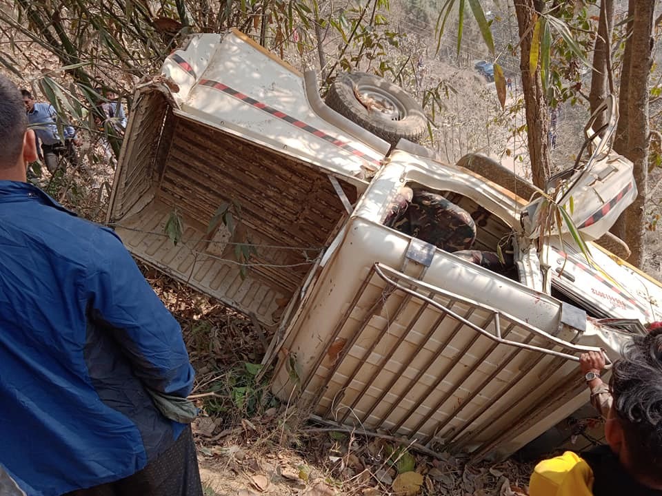 सडकबाट पल्टिएको जीप भिरमा रूखमा अड्किएर ठूलो क्षति हुनबाट जोगिएको जिल्ला प्रहरी कार्यालयका सूचना अधिकारी तथा प्रहरी निरीक्षक रामनारायण गुप्ताले जानकारी दिए।