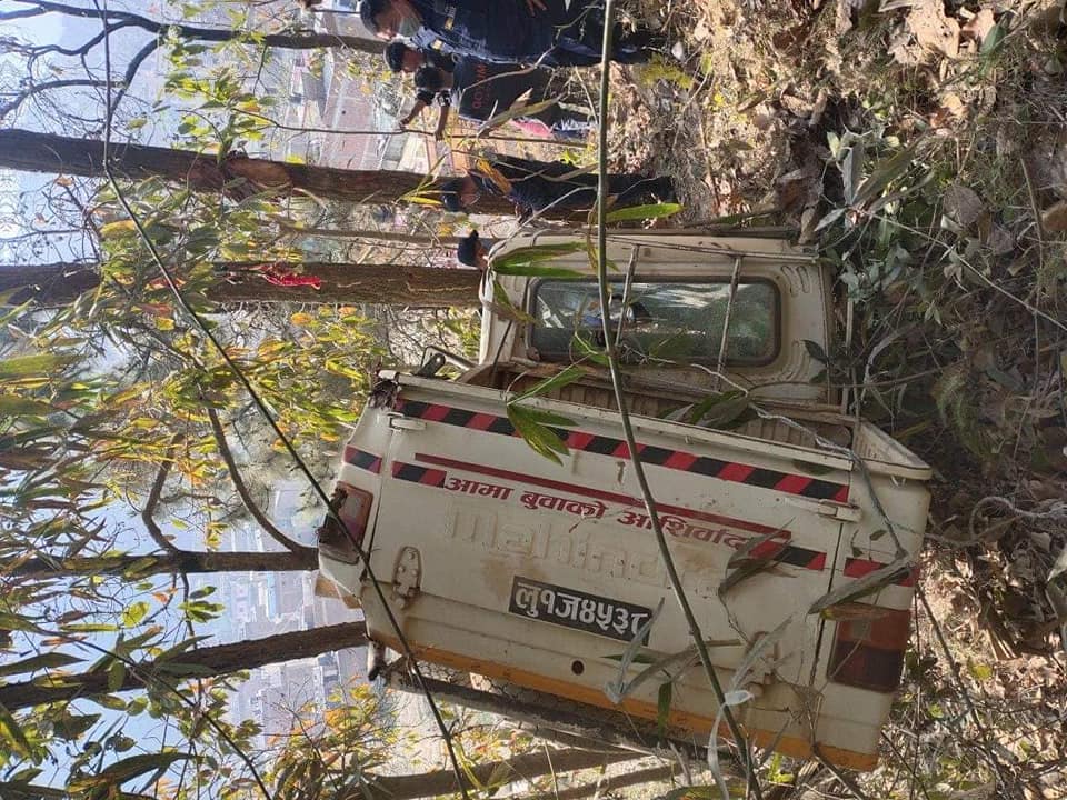 अर्घा सक्रेटीबाट सन्धिखर्क तर्फ आउदै गरेको लु १ ज ४५३८ नम्बरको जीप जनज्योति स्कुल नजिकै अनियंत्रित भई करिब ३० मिटर तल खसेको छ।