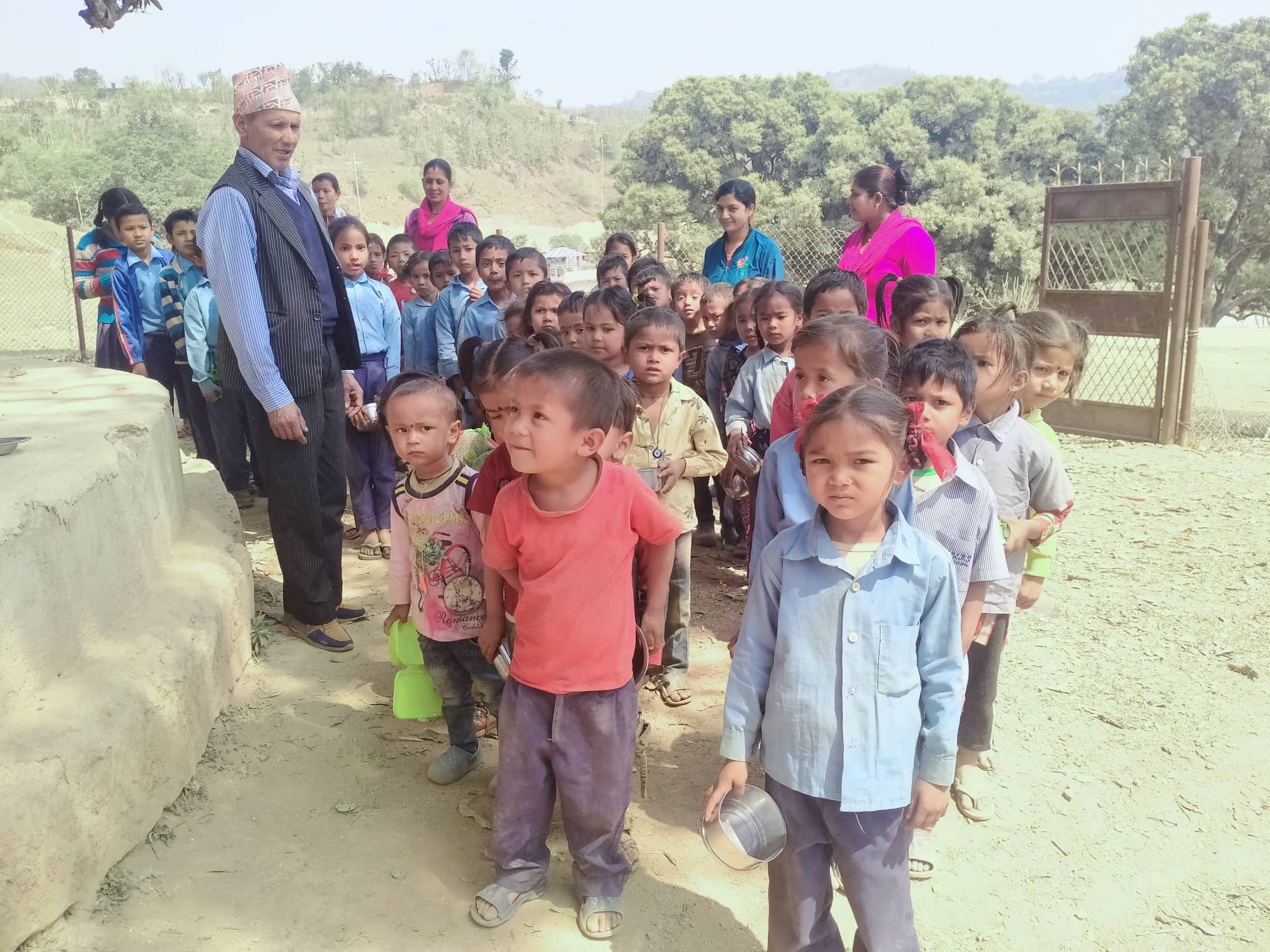 बलेवाङ्ग, अर्घाखाँची (अर्घाखाँचीडट्कम) । अर्घाखाँची जिल्लाको सन्धिखर्क नगरपालिका वार्ड नम्बर ५ वाङ्लाकाे श्री बलेवाङ्ग आधारभूत विद्यालयमा विद्यार्थीहरुलाई दिवा खाजा दिएपछि विपन्न परिवारका अभिभावकलाई राहत मिलेको छ ।
