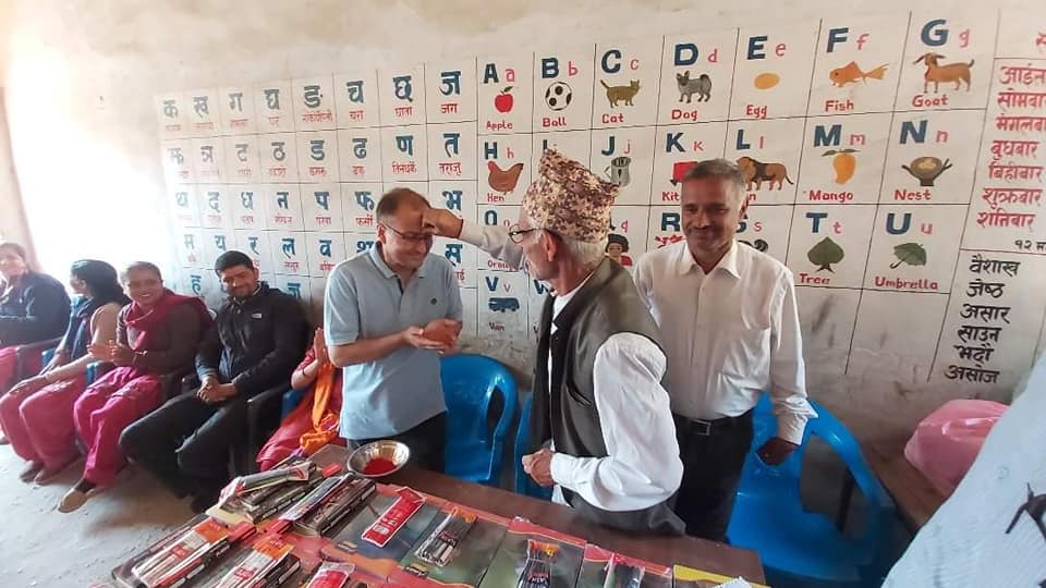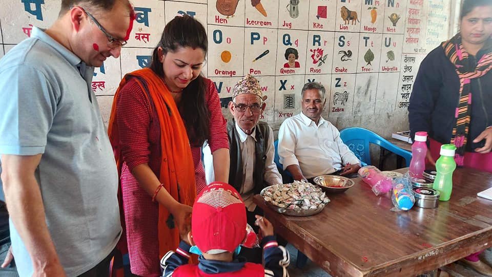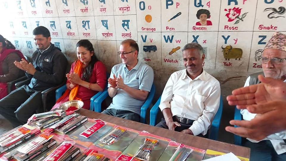 गैरेले आफ्नो जन्मदिनको अवसरमा कक्षा १ देखि ८ सम्मका सम्पुर्ण छात्र तथा छात्राहरूलाई एक कार्यक्रमका बीच शैक्षिक सामाग्री का साथै दिवा खाजा ल्याउन टिफिन तथा पानी ल्याउनको लागि बोतल हस्तान्तरण गर्नुभएको छ ।