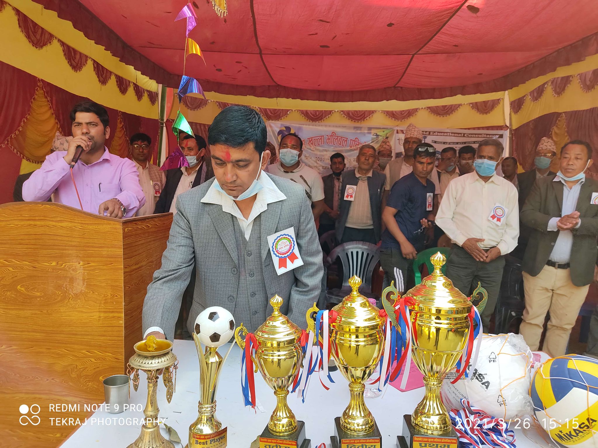 खेलकुद संयाेजक रामु नेपालीको अध्यक्षता, सदस्य बिष्णु शर्माको सञ्चालन र सचिव बावुराम खनालको स्वागत मन्त्वयमा सुरु भएको उद्घाटन समारोहमा भुमिकास्थान नगरपालिका नगर शिक्षा अधिकृत टुकलाल शर्मा, राष्ट्रिय जनमाेर्चाका केन्द्रीय सदस्य झविलाल थापा, भुमिकास्थान १ का वडा अध्यक्ष भाेजराज खनाल, २ का वडा अध्यक्ष बुद्धि बहादुर थापा, ४ का वडा अध्यक्ष बाबुराम पन्थी, ६ का वडा अध्यक्ष झविलाल बन्जाडे लगायतका स्थानीय राजनीतिक दलका प्रतिनिधि तथा स्थानीय संघ संस्थाका प्रतिनिधिहरुकाे उपस्थित रहेको थियाे।