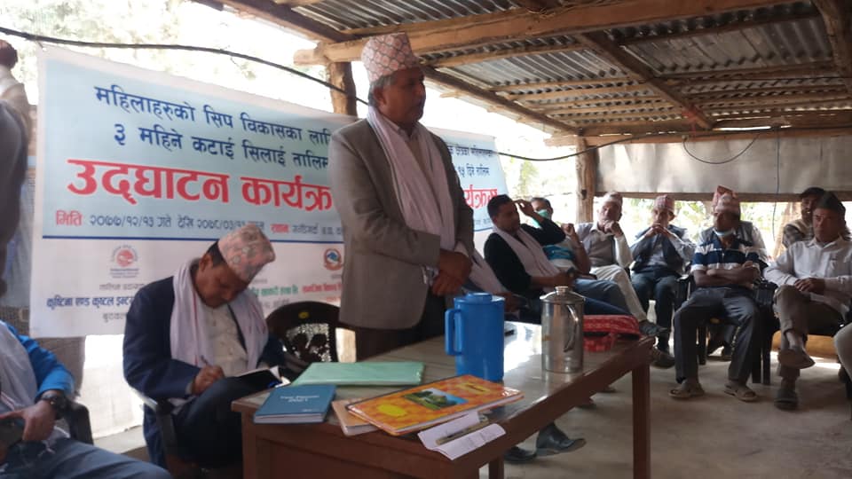 सामाजिक विकास डिभिजन कार्यालय कपिलवस्तुको आयोजना तथा सूर्योदय बहुउद्देश्यीय सहकारी संस्था अर्घाखाँची जिल्लाको सन्धिखर्क नगरपालिका वार्ड नं १२ को समन्वयमा भएको महिलाहरुका लागि ३ महिने कटाई सिलाई तालिमको उद्घाटन गर्दै आचार्यले महिलाहरुको परनिर्भरतालाई शुन्यमा लैजानु पर्नेमा जोड दिनुभयो ।