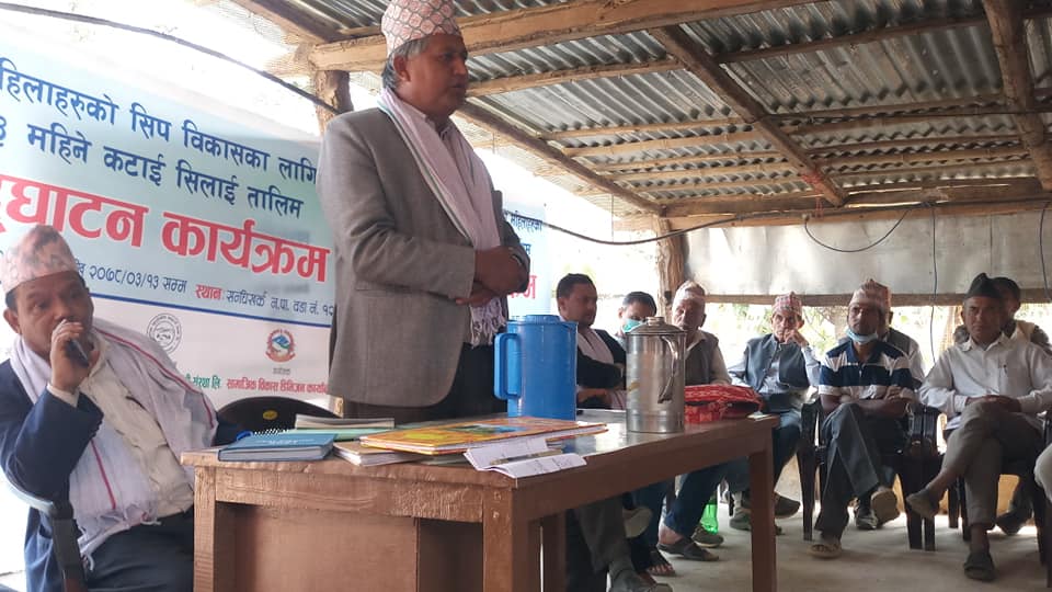 १५ दिने साबुन र सिलाई कटाई तालिमको संयुक्त रुपमा उद्घाटन गर्दै नेकपा एमाले जिल्ला कमिटि अध्यक्ष समेत रहनुभएका नेता आचार्यले परिवारका सबै सदस्य आयआर्जन र आत्मनिर्भर बन्नुपर्ने बताउनुभयो । कृष्टिना एण्ड कृष्टल इन्टरनेश्नल कन्सलटेन्सी तालिम प्रदायक रहेको कार्यक्रममा उहाँले लुम्बिनी प्रदेश सरकारले महिला तथा युवाहरुका लागि आय आर्जन र आत्मनिर्भर बनाउन बिभिन्न सीपमूलक तालिमको व्यवस्था गरेको बताउनुभयो । सिकेको सीपलाई व्यवहारमा उतार्ने गरी लाग्न जोड दिदै नेता आचार्यले सहकारीको माध्यमबाट जीवीकोपार्जन र सम्बृद्ध वडा बनाउने अभियानमा लाग्न सबैलाई आग्रह पनि गर्नुभयो । अर्को फरक प्रसंङ्गमा नेता आचार्यले सनपा १२ लाई खानेपानी, शिक्षा, स्वास्थ्य र विकासका आधारभूत पूर्वाधारको हिसावले कुनै कुरामा पछाडी नपार्ने गरी चालिएको संघ प्रदेशको कदमलाई अझ बृद्धि गरिने बताउनुभयो ।