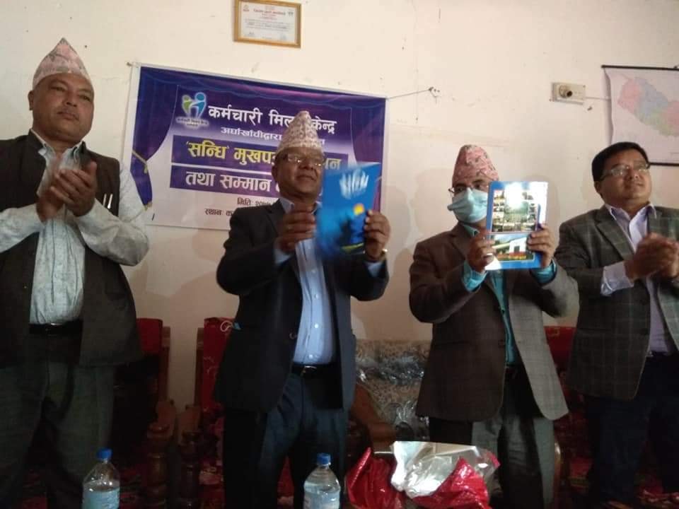 सन्धिखर्क, अर्घाखाँची (अर्घाखाँचीडट्कम) । अर्घाखाँची जिल्लाको सन्धिखर्कमा कर्मचारी मिलन केन्द्र अर्घाखाँचीद्धारा प्रकाशित ‘‘सन्धि” मुखपत्रको बिमोचन तथा सम्मान कार्यक्रम शुक्रबार सम्पन्न भएको छ ।