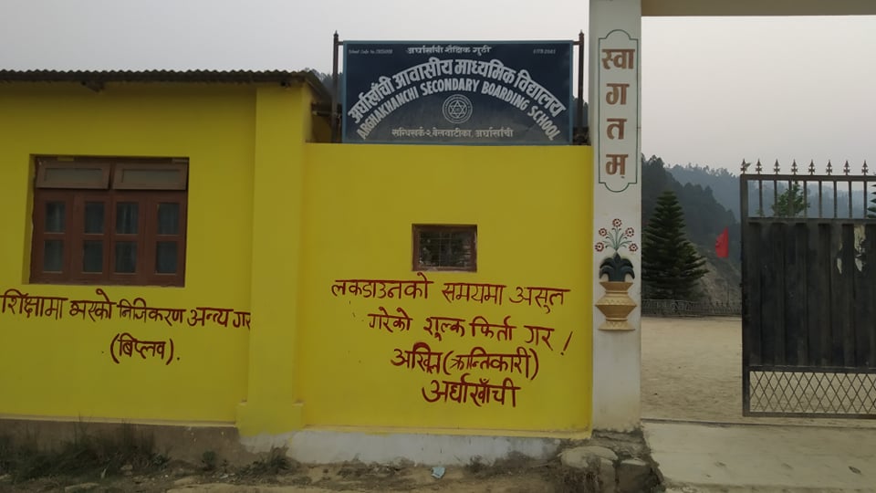 अनेरास्वियु क्रान्तिकारी जिल्ला समिति अर्घाखाँचीले जिल्ला सम्मेलन नजिकिएसँगै जिल्लाका विभिन्न सार्बजनिक स्थल स्कुल लगायत ठाँउमा भिते लेखन गरिएको अध्यक्ष नविन खड्काले बताउनु भयो ।