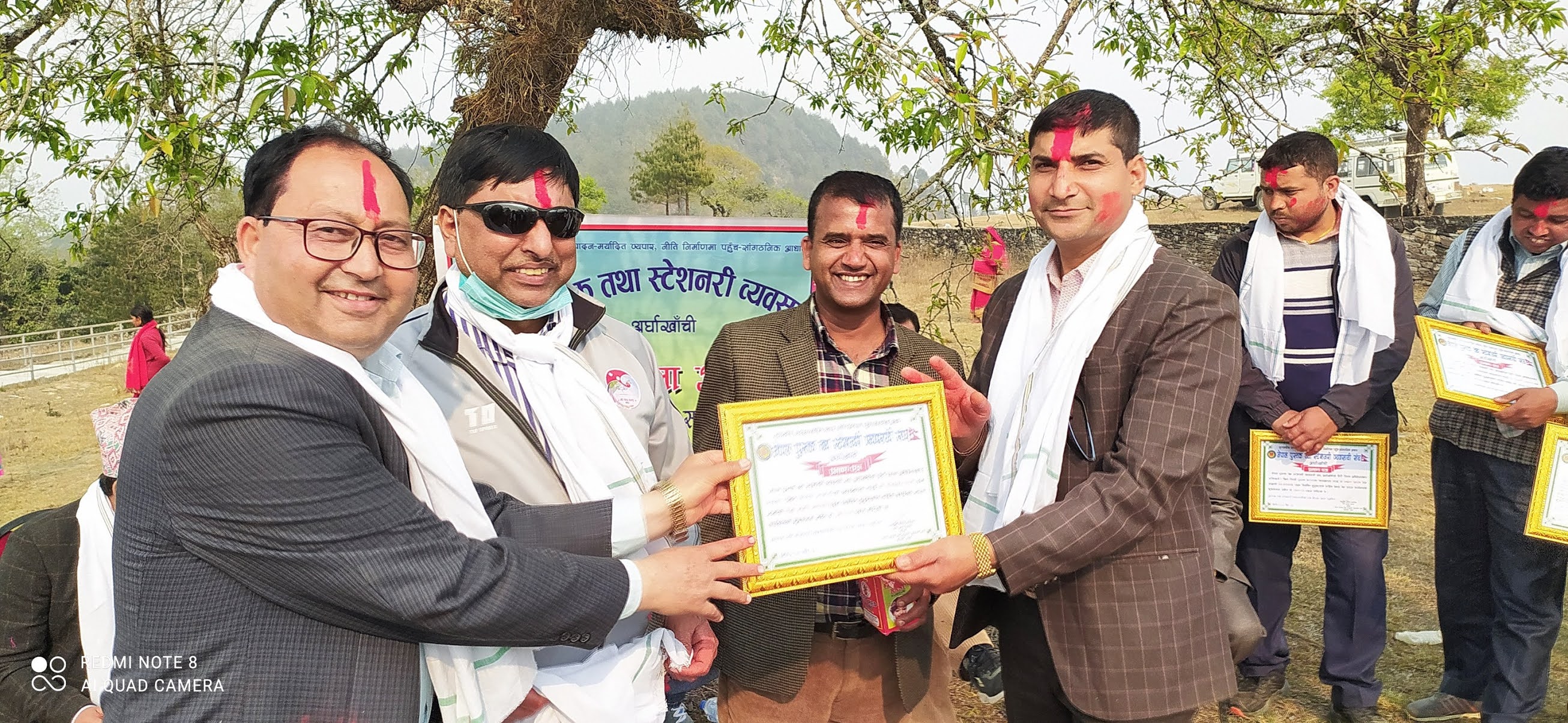 कार्यक्रममामा प्रमुख अतिथि दाेर्णप्रसाद भुसाल र पुस्तक तथा स्टेशनरि व्यवसायि महासंघका पुर्व केन्द्रीय सदस्य तथा कार्यक्रमका विशिष्ट अतिथि सिद्धि प्रसाद भुसालले नवनिर्वाचित पदाधिकारीहरुलाई निर्वाचित प्रमाण पत्र, सम्पूर्ण व्यवसायीहरुलाई व्यवसायीक अावद्धता प्रमाण पत्र प्रदान गर्दै व्यवसायिक सफलताको शुभकामना व्यक्त गर्नुभएकाे थियाे ।