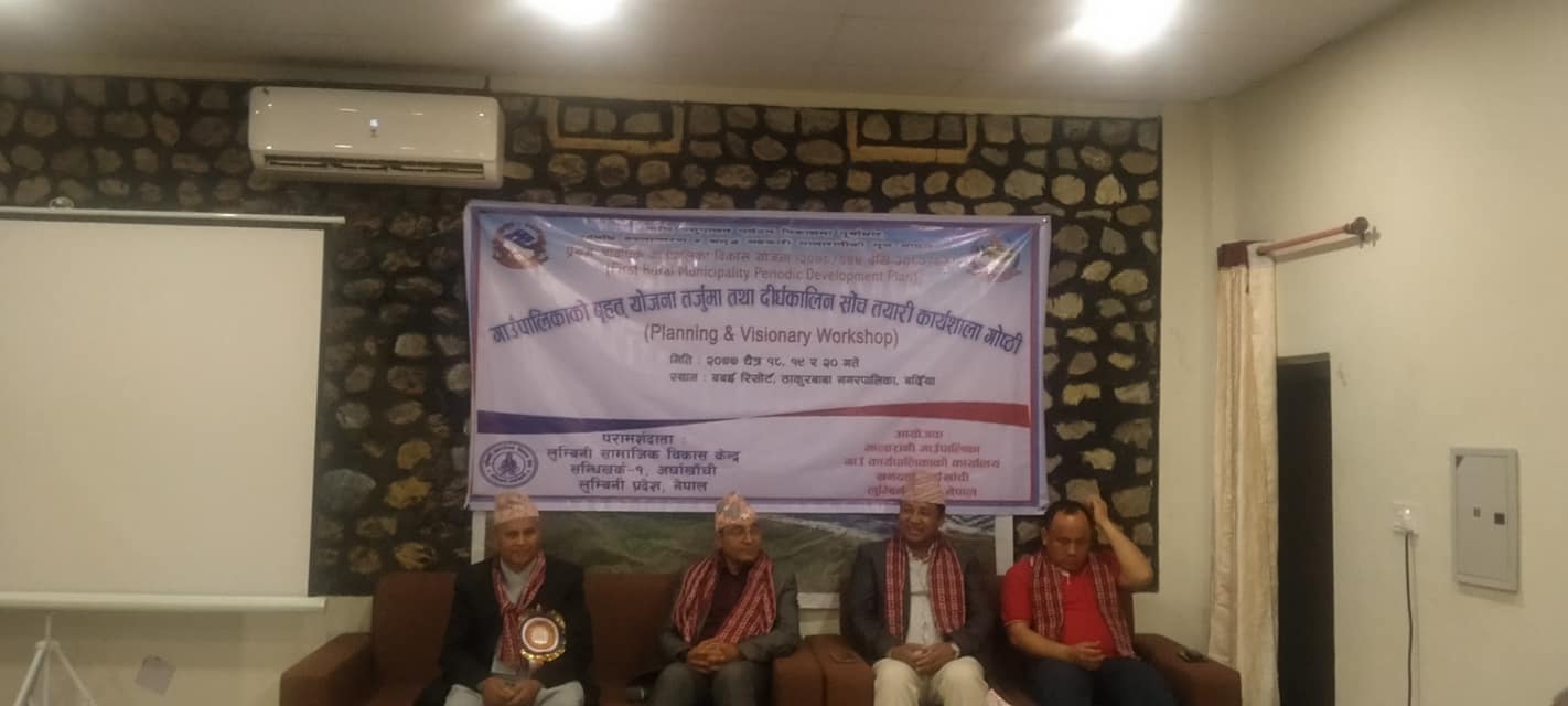 बर्दिया (अर्घाखाँचीडट्कम) । अर्घाखाँची जिल्लाको मालारानी गाउँपालिकाको आयोजनामा बृहत् याेजना तर्जुमा तथा दीर्घकालीन साेच तयारी कार्यशाला गाेष्टी बर्दियाको ठाकुरबाबामा सम्पन्न भएको छ ।