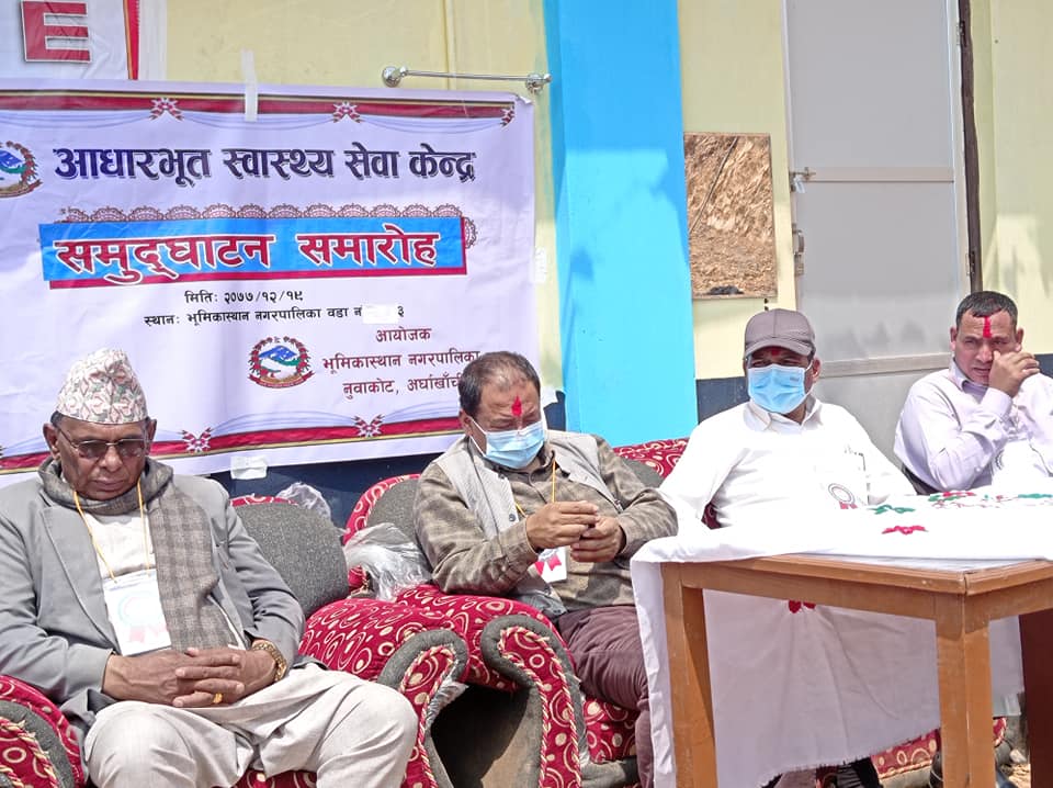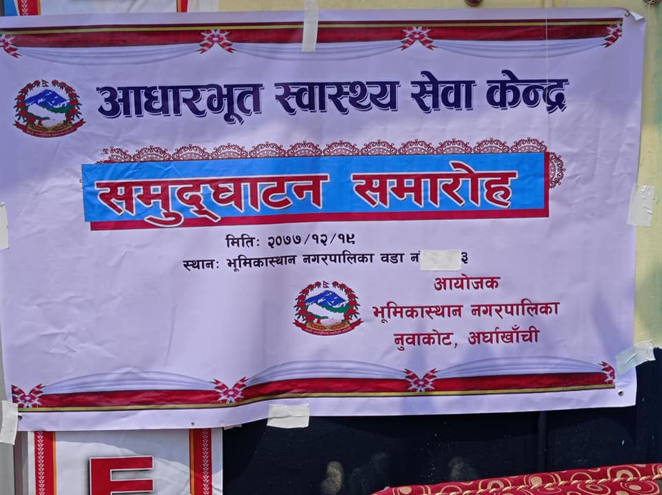 धारापानी, अर्घाखाँची १९, चैत्र । अर्घाखाँची जिल्लाको भूमिकास्थान नगरपालिका वार्ड नं ३ धारापानीमा निर्माण गरेको आधारभुत स्वास्थ्य सेवा केन्द्रको आज उद्घाटन गरिएको छ ।