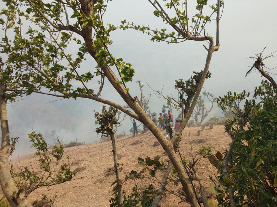 नुवाकाेटकाे ताराखसे मन्दिर तल आसपासको सामुदायिक वनमा दिउसोदेखि भीषण आगलागी भएको हो ।