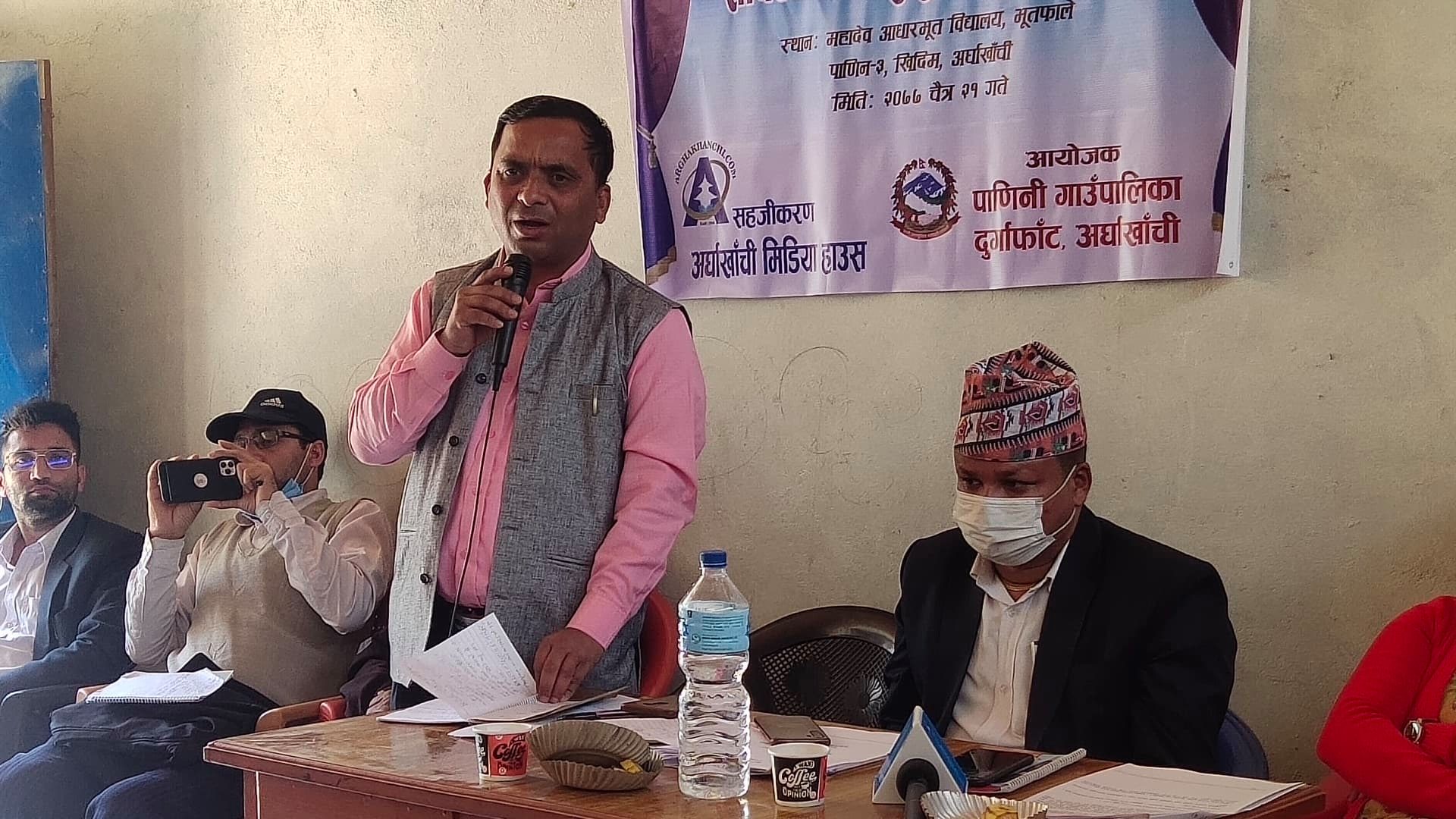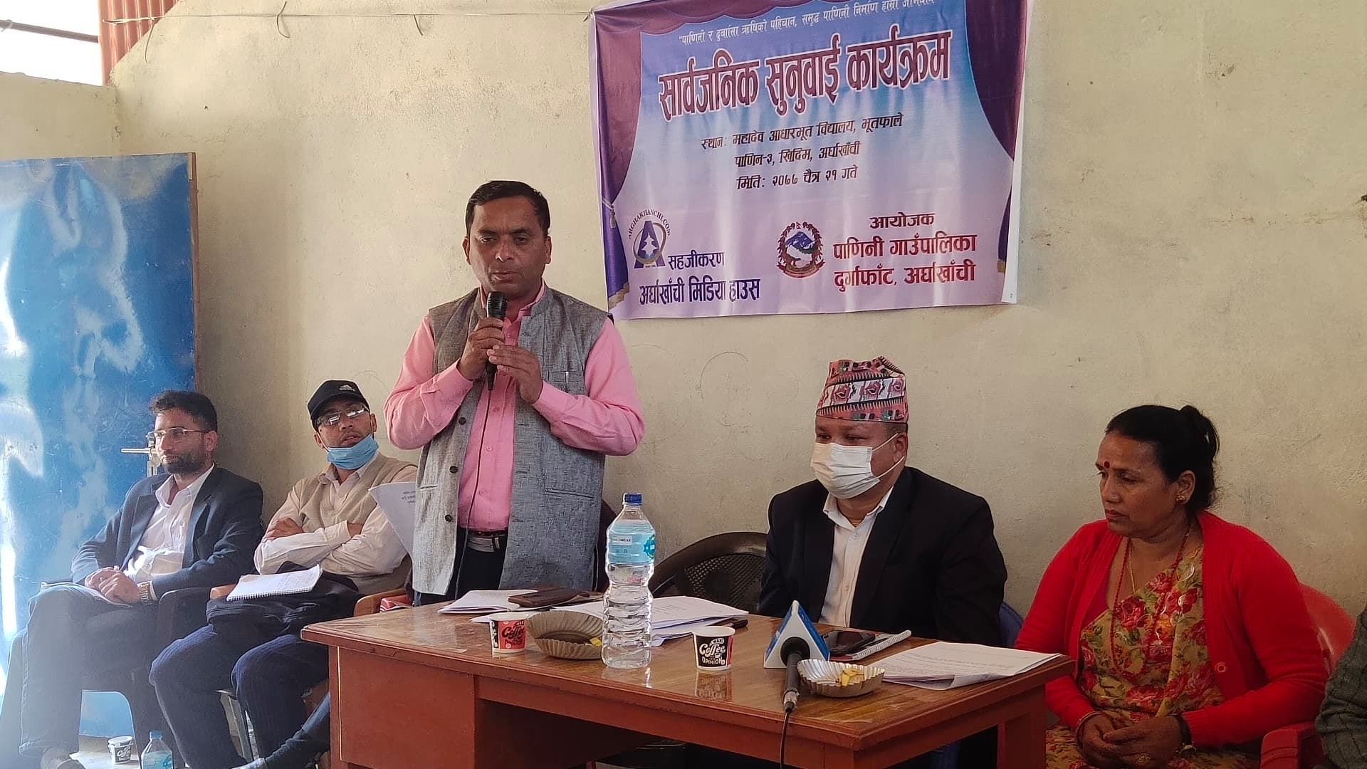 अर्घाखाँची मिडिया हाउसको सहजीकरणमा सम्पन्न कार्यक्रमको अध्यक्षता पाणिनी गाउँपालिकाका प्रमुख प्रशासकिय अधिकृत नेत्र प्रसाद घिमिरे, सेवा प्रदायकका तर्फबाट पाणिनी गाउँपालिकाका अधक्ष अच्युत गौतम, उपाध्यक्ष लक्ष्मी गौतम, वार्ड न . ३ का वार्ड अध्यक्ष देवी बहादुर क्षेत्री, डट्कमका प्रमुख मेहर सिंह के.सी, जनप्रतिनिधीहरु र स्थानिय अगुवा, राजनीतिक दलका प्रतिनिधि, समाजसेवी पत्रकार लगायतको उपस्थिती थियो ।