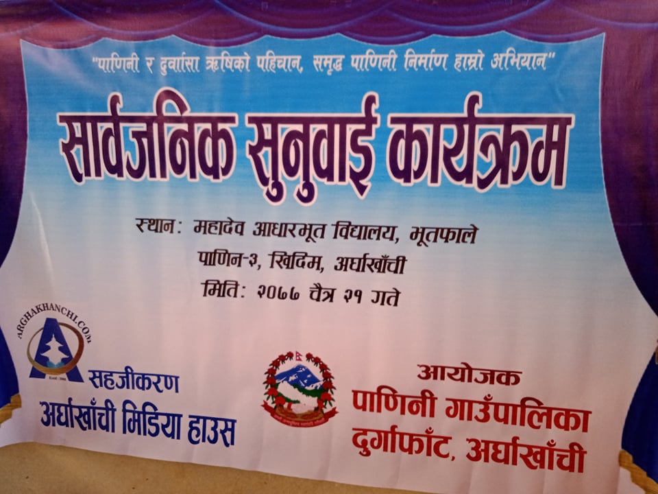 सुनुवाई कार्यक्रम अर्घाखाँचीडट्कमका सम्पादक सन्तोष कुमार के.सीको संचालनमा सम्पन्न भएको थियो ।