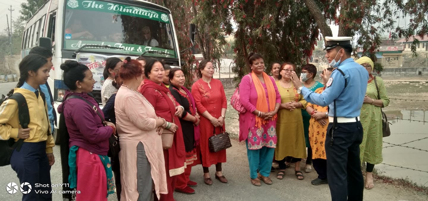 सवारी दुर्घटना न्युनिकरण गरी सहज र सुरक्षित सवारी आवागमन गराउने तथा सर्वसाधारणमा  ट्राफिक जनचेतना अभिबृदी गराई ट्राफिक ब्याबस्थापनलाई प्रभाबकारी र जनमानसमा सु सुचित गराई सर्बसाधारणलाई ट्राफिक शिक्षा प्रदान गर्ने  उदेश्यका साथ आज पालीको खहडी स्थित श्री बाबुराम प्राथमिक बिद्यालयमा अध्यनरत ७० जना छात्र छात्राहरुलाई अस्थाई ट्राफिक प्रहरी पोष्ट नरपानीबाट खटिएको टोलिले ट्राफिक नियम सम्बन्धि प्रशिक्षण दिनुको साथै ,अस्थाई ट्राफिक प्रहरी पोष्ट ठाडाबाट शितगंगा नगरपालिका वार्ड नं. ३ ठाडा स्थित खटिएको ट्राफिक चेकिङ टोलीले चालक तथा यात्रुहरु २ पटकमा  ५० जनालाई सडकमै जम्मा गरी सवारी साधन चलाउदा ध्यान दिनु पर्ने कुराहरु सवारी साधनमा यात्रा गर्दा पलना गर्नु पर्ने नियम हरु तथा  अन्य ट्राफिक नियम सम्बन्धि प्रशिक्षण दिईएको थियो ।