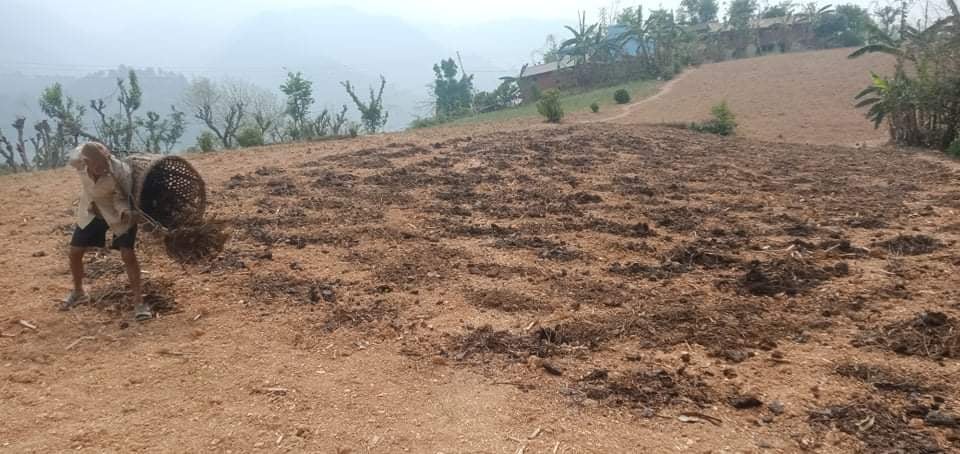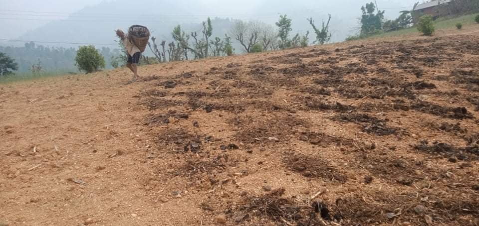 हुनत लामो खडेरीका कारण खेतबारीहरु मरुभूमि जस्तै देखिन थालेका छन् तर पनि किसानहरु बैशाखको सुरुमा पानी पर्ने आशाले आफ्नो कर्म गरिरहेको देखिन्छ ।