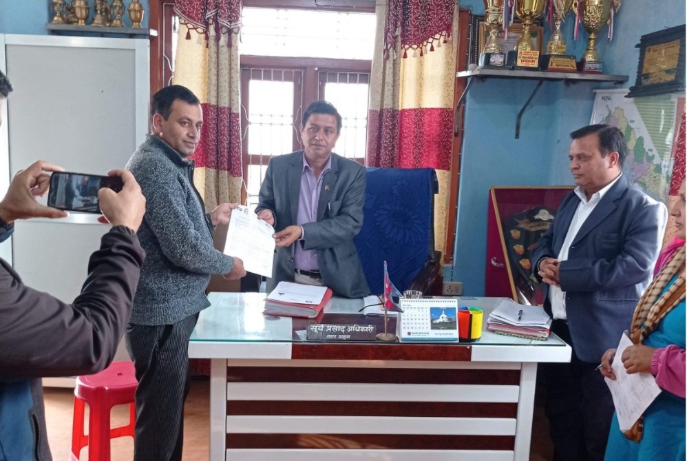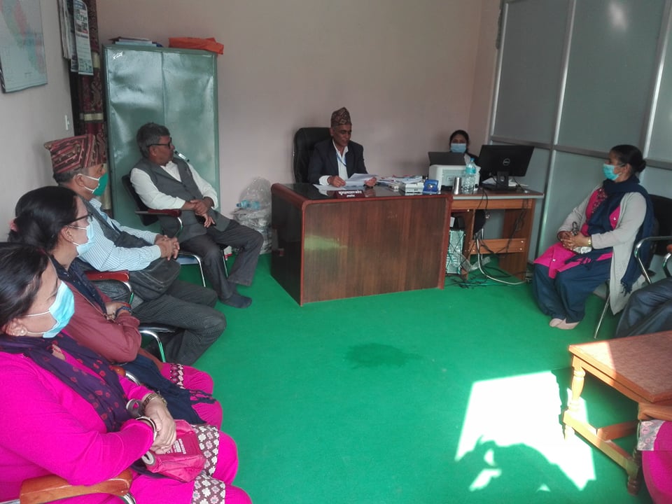 संगठनका जिल्ला काेषाध्यक्ष तथा नगर इन्चार्ज नवराज न्याैपाने, राहत विभागकाे नगर संयाेजक, राहत विभागकाे जिल्ला कमिटी उपाध्यक्ष विष्णु खनाल, जिल्ला संगठन सदस्य भेषराज बेल्बासे लगाएतका प्रतिनिधिमुलक पदाधिकारी तथा सदस्यहरु र संगठनमा आवद्ध सदस्यहरु नगरपालिकाको कार्यालयमा पुगेर ज्ञापन पत्र बुझाएका हुन् ।