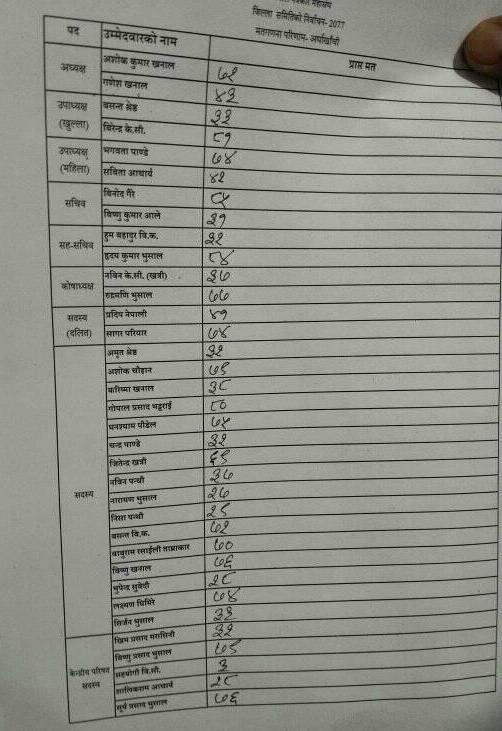 त्यस्तै समाबेशी सहसचिव रमेश बि.क, अनिल नेपाली, सदस्य जनजाति अम्बिका श्रेष्ठ, सदस्य महिला सरिता भुसाल, सदस्य खुल्ला लक्ष्मण घिमिरे, घनश्याम पौडेल, बिष्णु खनाल, जितेन्द्र खत्री, गोपाल भट्टराई, अशोक चौहान, वसन्त बि. क, दलित सदस्य सागर परियार, समाबेशी बाबुराम रसाइली, केन्द्रिय परिषद सदस्य बिष्णु प्रसाद भुसाल, सहयोगी बि. सी, सुर्य प्रसाद भुसाल, प्रदेश परिषद सदस्य मेहर सिंह के.सी, बिजय के.सी, देबेन्द्र कुँवर, अशोक पौडेल, सागर महत, गोमा भुसाल बिजयी भएका छन्।