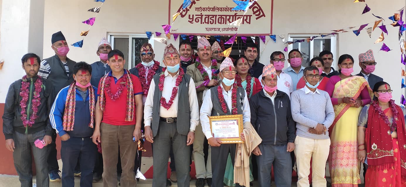 रमेशचन्द्र भट्टराई ब्रामणले ५ कन्यासहित पुजाअर्चना गरी प्रमुख अतिथि लेखनाथ पोख्रेलबाट रिबन काटी शीलापत्र अनावरण गरी वडा कार्यालय उद्घाटन कार्यक्रम सम्पन्न भएको थियो । कार्यक्रममा जग्गादाता ज्ञानेन्द्र सेन लगायत सपरिवार र भवन निर्माण गर्ने निर्माण ब्यावसायी सहिद दीन मियालाइ सम्मान पत्र,दोसल्ला तथा खादाले सम्मान गरिएको थियो ।