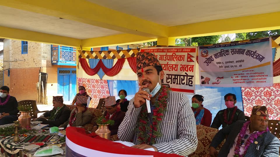 छत्रदेव गाउँपालिका अध्यक्ष लेखनाथ पोख्रेलले ठूलापोखराको नवनिर्मित वार्ड कार्यालय भवन उद्घाटन, नवनिर्मित वि.पि. स्मृति मञ्चको उद्घाटन र ज्येष्ठ नागरिकहरूलाई सम्मान एकै साथ गर्नुभएको थियो ।