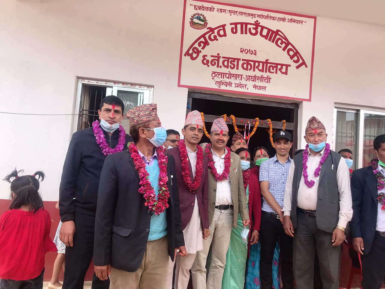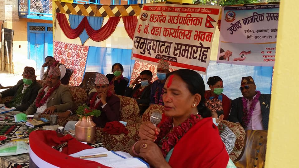 छत्रगंज, अर्घाखाँची (अर्घाखाँचीडट्कम) । अर्घाखाँची जिल्लाको छत्रदेव गाउँपालिका वार्ड नम्बर ५ छत्रगंज र ६ ठुलापाेखरामा वार्ड कार्यालय भवन उद्घाटन कार्यक्रम सम्पन्न भएको छ ।