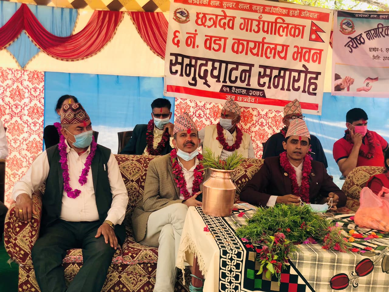 यस्तै छत्रगंजमा वार्ड कार्यालयको भवन उद्घाटन कार्यक्रम वडाध्यक्ष बालकृष्ण श्रेष्ठको अध्यक्षता,गाउँपालिका अध्यक्ष लेखनाथ पोख्रेलको प्रमुख आतिथ्यता,उपाध्यक्ष तुल्शीदेवी श्रेष्ठ ,निमित्त प्रशासकीय अधिकृत बुद्दिराम न्योउपानेको विशिष्ट आतिथ्यतामा सम्पन्न भएको थियो ।