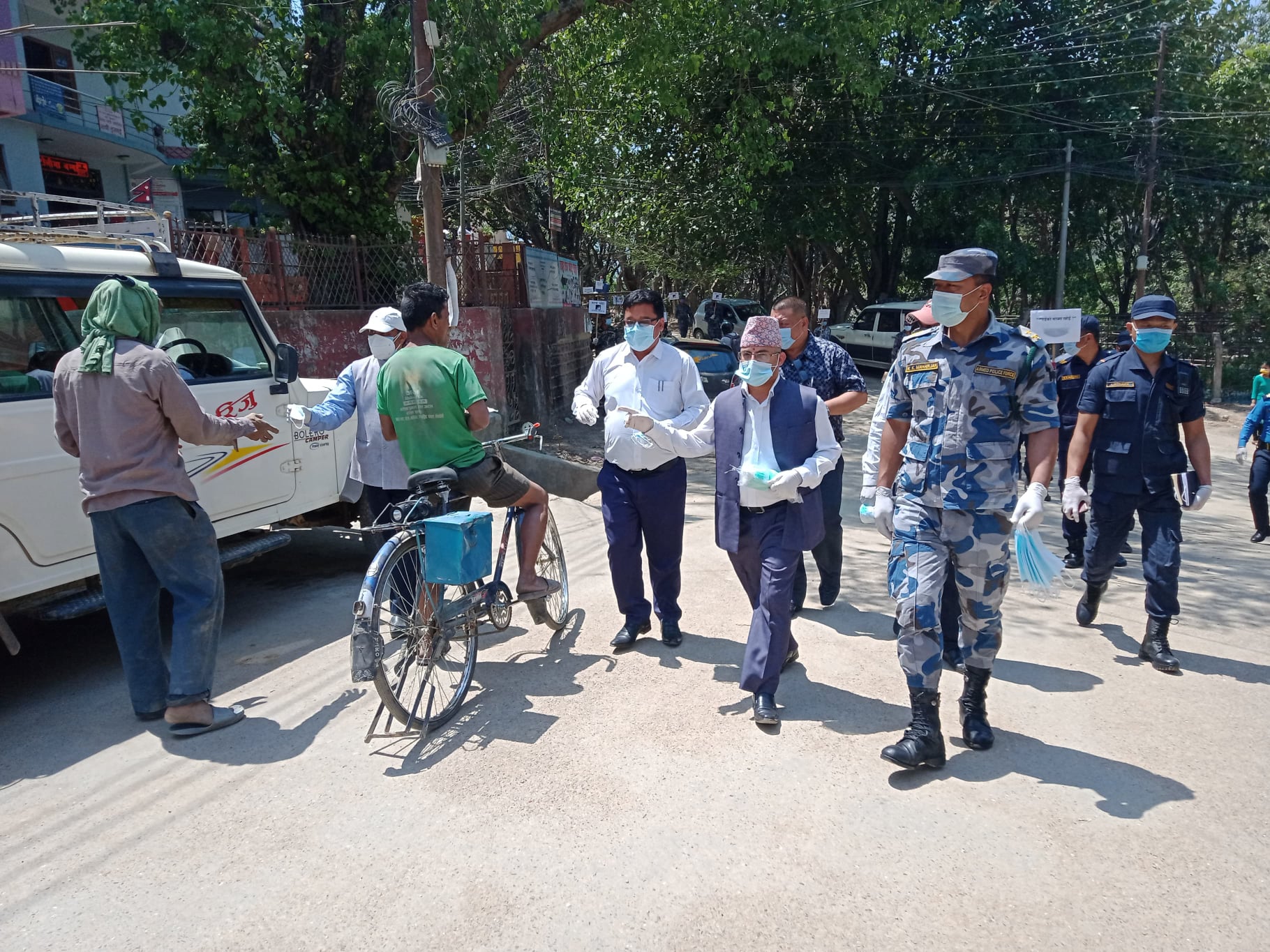 सन्धिखर्क, चुत्राबेसीमा श्वरी बक्स गुल्मका गुल्मपति सेनानी लेखनाथ कटुवाल, यस कार्यालयका कार्यालय प्रमुख प्रहरी नायव उपरीक्षक माधव प्रसाद बुढाथोकी, नं. ३६ गुल्मका गुल्मपति सशस्त्र प्रहरी नायव उपरीक्षक रामकृष्ण महर्जन, प्रमख राष्ट्रिय अनुसन्धान अधिकृत बिनय चतुर्बेदी, बिभिन्न कार्यालयका कार्यालय प्रमुखहरु, संघ सस्थाका प्रतिनिधीहरु तथा नेपाली सेना, नेपाल प्रहरी र सशस्त्र प्रहरी नेपाल समेतको टोलीले सर्वसाधारण, सवारी चालक/सह-चालक तथा यात्रुहरूलाई मास्क बितरण, मास्क नलगाई हिडडुल गरेमा संक्रामक रोग ऐन २०२० अनुसार कारवाही गरिने भनि सचेत गराई सम्झाई बुझाएका थिए ।