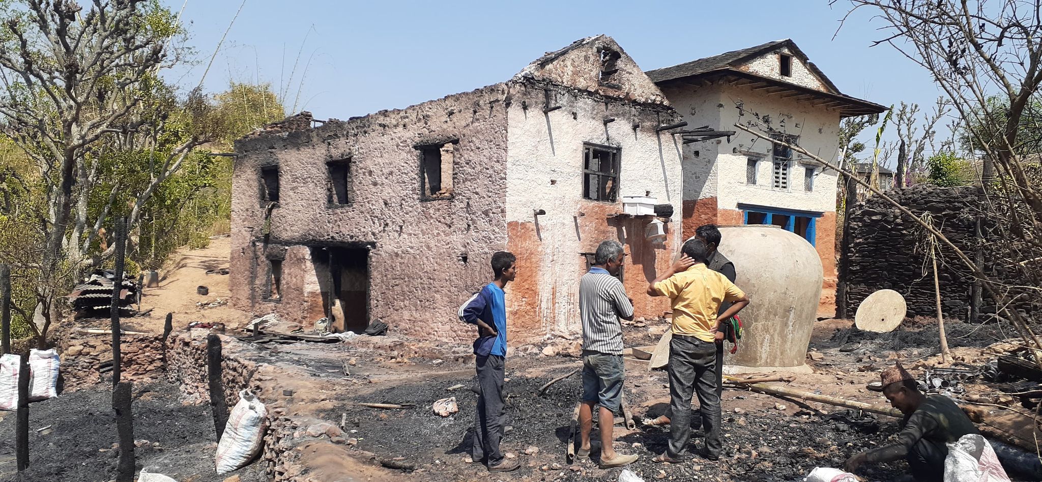 शनिबार साँझ विद्युत सट भई आगलागी हुदा नारायण प्रसाद भुसाल र भुवानन्द भुसालको घर जलि घर पुर्ण रूपमा नष्ट भएको हो ।  साथै घरमा भएको अन्न पात लत्ताकपडा नगद सवै जलेर नष्ट भएको छ ।