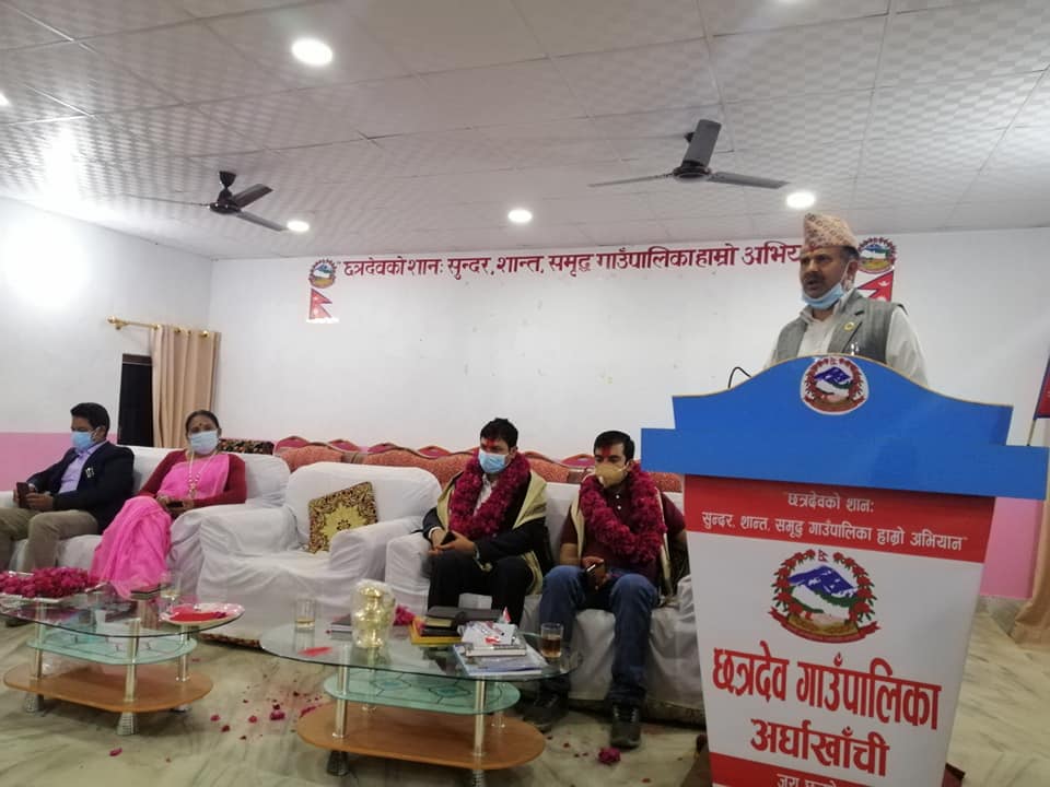 छत्रदेव गाउँपालिकाबाट सरूवा भई भएका प्रमुख प्रशासकीय अधिकृत पबन अर्यालको विदाई एवं नव आगन्तुक प्रमुख प्रशासकीय अधिकृत भेषराज पन्तको स्वागत कार्यक्रम सम्पन्न भएको हो ।
