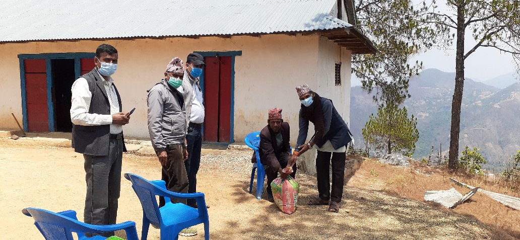 मैदानमा वैदिक सनातन धर्म सेवा समाज पाणिनीले बिहान बेलुका छाक टार्ने विपन्न परिवार खिमबहादुर विकलाई राहत स्वरुप २० किलो चामल,१किलो नुन,२ किलो दाल, २ किलो आलु र साबुन वितरण गरेको हो ।