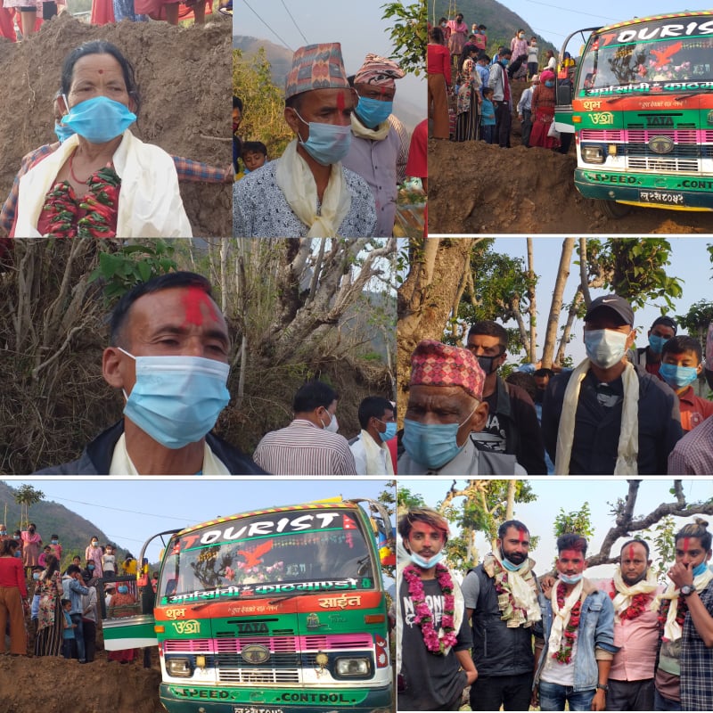 पहिलो पटक लु १ ख ८०५१ नम्बरको बस पुगेपछि स्थानीयले चालक नारायण अधिकारी लगायतलाई फुलमाला, खादा तथा अविर लगाई भव्य स्वागत गरे। पहिलो पटक घरआगनमै बस पुगेपछि स्थानीयबासी दंग भएका छन्। आफ्नो गाउँमै यसरी बस पुग्दा निकै खुसी लागेको स्थानीय बासिन्दाले बताए ।