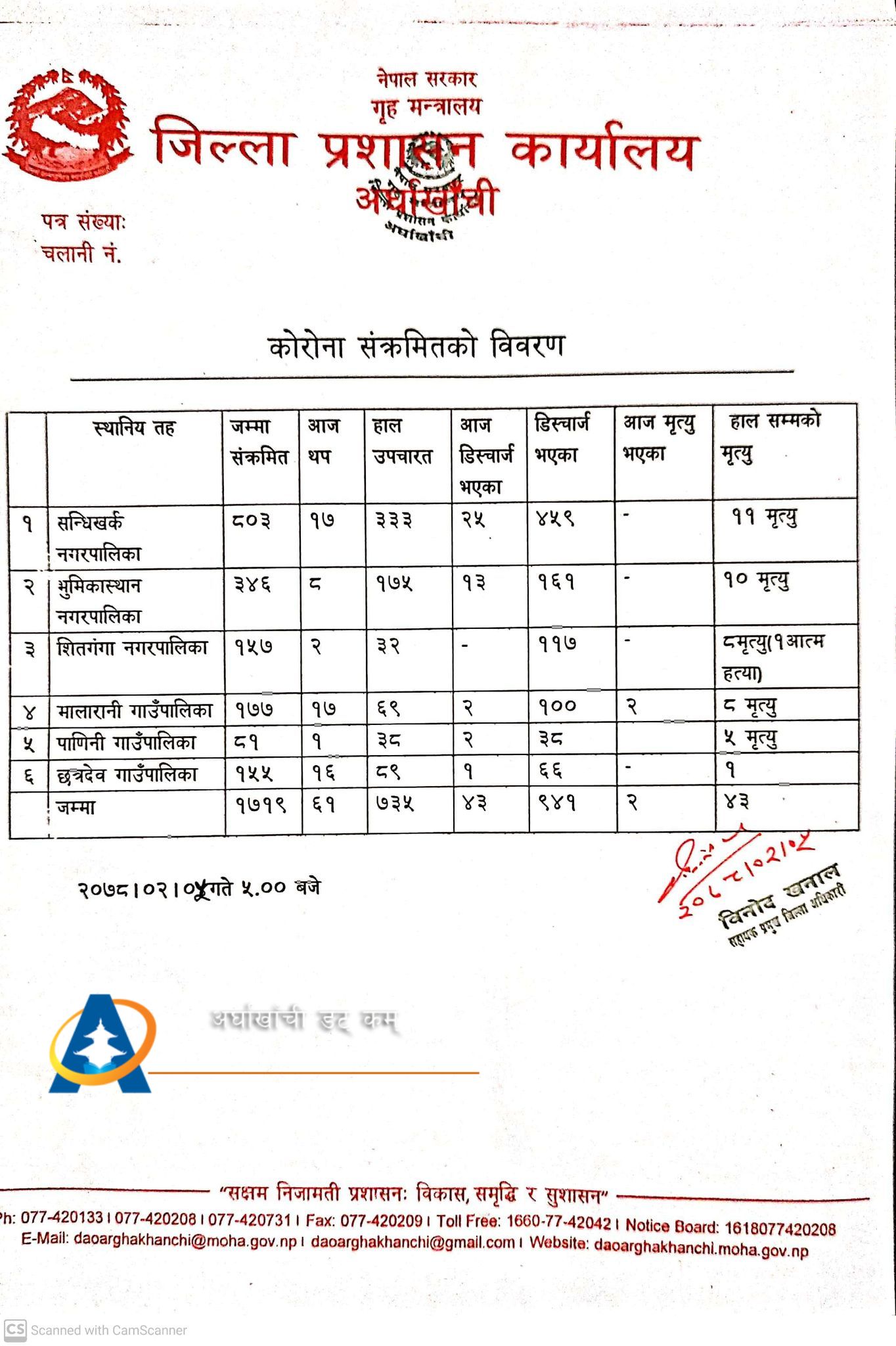 अर्घाखाँचीमा आज ४३ जनाले कोरोना जिते, ६१ जना संक्रमित थपिए (सम्पूर्ण विवरण सहित)