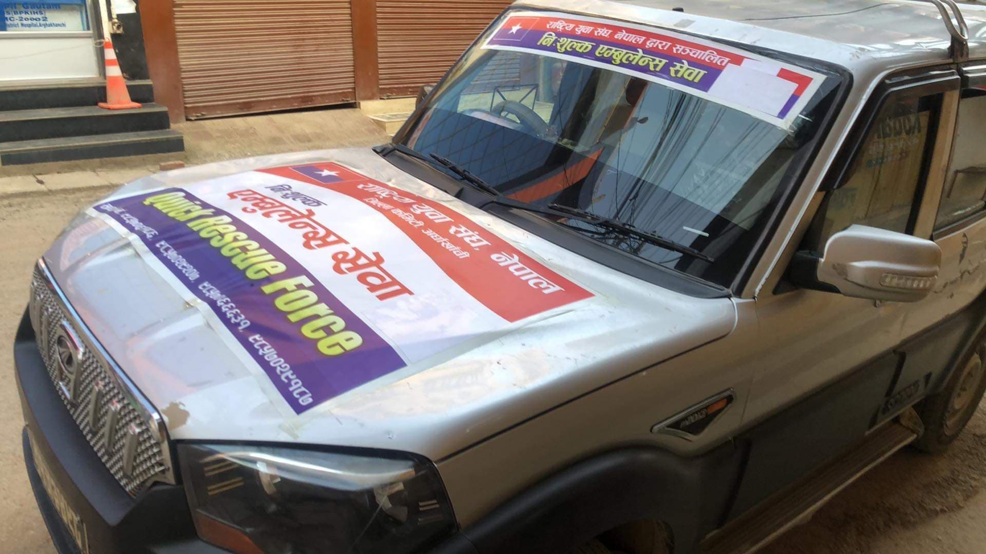 युवा संघ नेपाल अर्घाखाँचीले स्कार्पियो गाडीलाई एम्बुलेन्स बनाई निशुल्क सेवा दिन भन्दै फर्स्ट एड (प्राथमिक उपचार) चिन्ह प्रयोग गरेको भन्दै नेपाल रेड्क्रस सोसाइटीले आपत्ती जनाएको हो ।