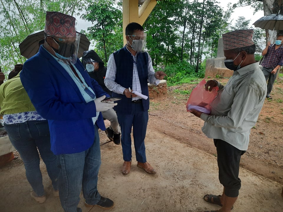 कार्यक्रममा २३ जना कोरोना संक्रमित, १७ जना भारत लगायत तेस्रो मुलुकबाट आई होम क्वारेन्टिनमा बसेका तथा ७ जना वृद्धबृद्दा गरी करिव ४५ देखि ५० जनालाई औषधी तथा स्वास्थ्य सामाग्री बितरण गरिएको थियो ।