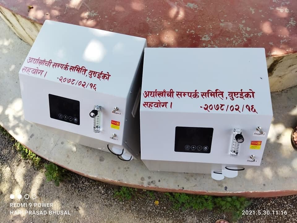 सन्धिखर्क, अर्घाखाँची (अर्घाखाँचीडट्कम) । अर्घाखाँची जिल्ला अस्पताललाई अर्घाखाँची सम्पर्क समिति युएईले दुई वटा कन्सनटेटर मेसिन हस्तान्तरण गरेको छ ।