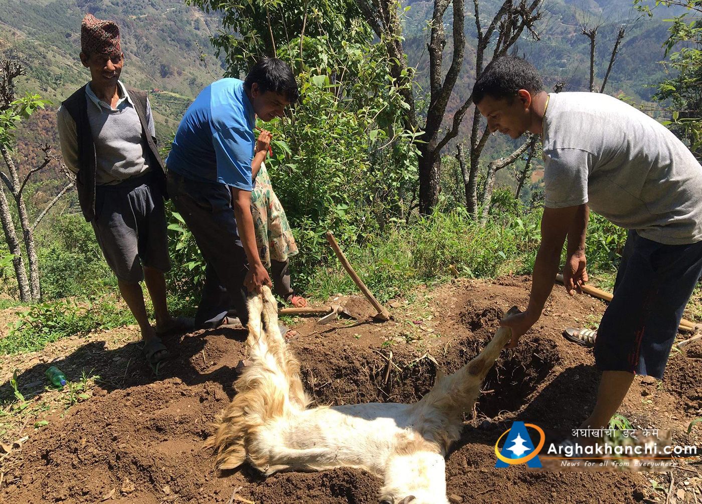 १ महिना अघि कृषि ज्ञान केन्द्र अर्घाखाँचीले अनुदानमा वितरण गरेका १० वटा बोका वितरण गरेको थियो । ति बोका बाट लक्षण देखिएको र ति बोका पनि मरेको अन्य बाखा्र पनि धमाधम मरेको वडाअध्यक्ष भुसालले जानकारी दिनुभयो ।