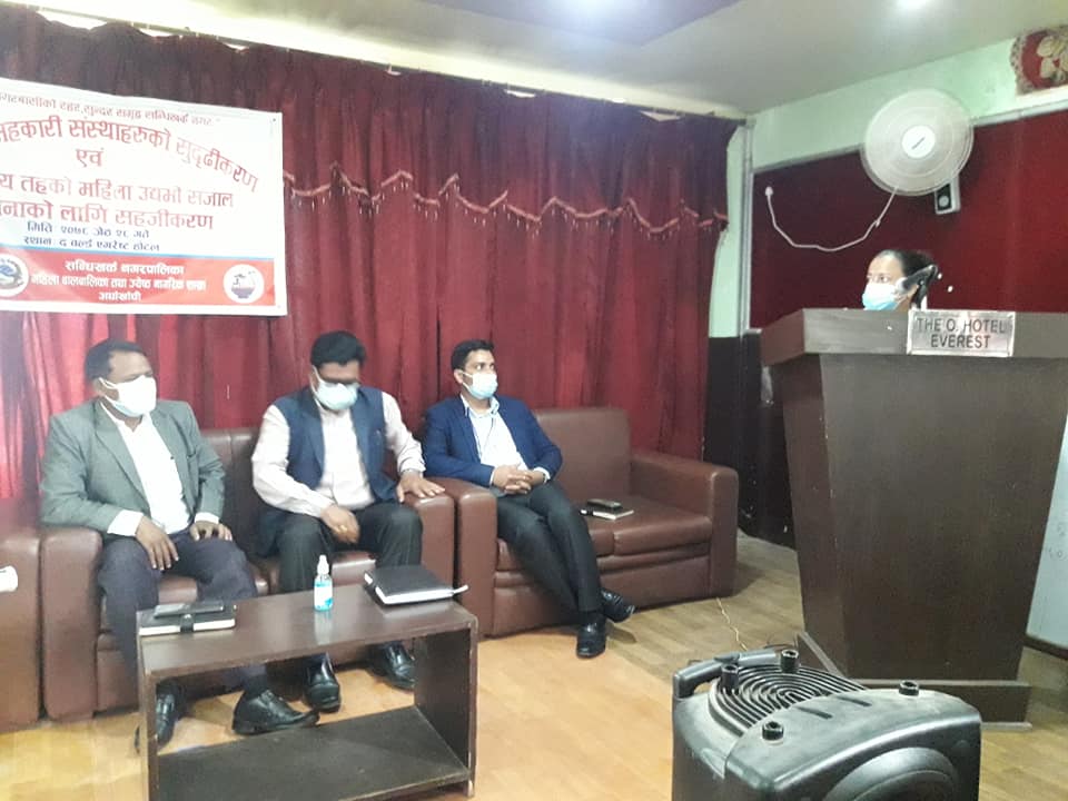 सन्धिखर्कमा शुक्रबार महिला बालबालिका तथा जेष्ठ नागरिक शाखाको आयोजनामा महिला सहकारी संस्थाहरुको सुदृढीकरण एबम स्थानीय तहको महिला उधमी संजाल स्थापनाका लागी सहजीकरण कार्यक्रम सम्पन्न भएको हो ।