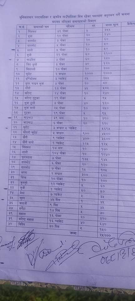 अर्घाखाँची जिल्लाका प्रमुख जिल्ला अधिकारी बिष्णु पौडेल को अध्यक्षतामा बसेको बैठकले उक्त म्याद गुज्रेका सामाग्री हरु जलाउने निर्णय गरेको हो बैठक मा घरेलु तथा साना उधोग कार्यलय अर्घाखाँचीका प्रमुख केशव सुनार लगायतको उपस्थिति रहेको थियो ।